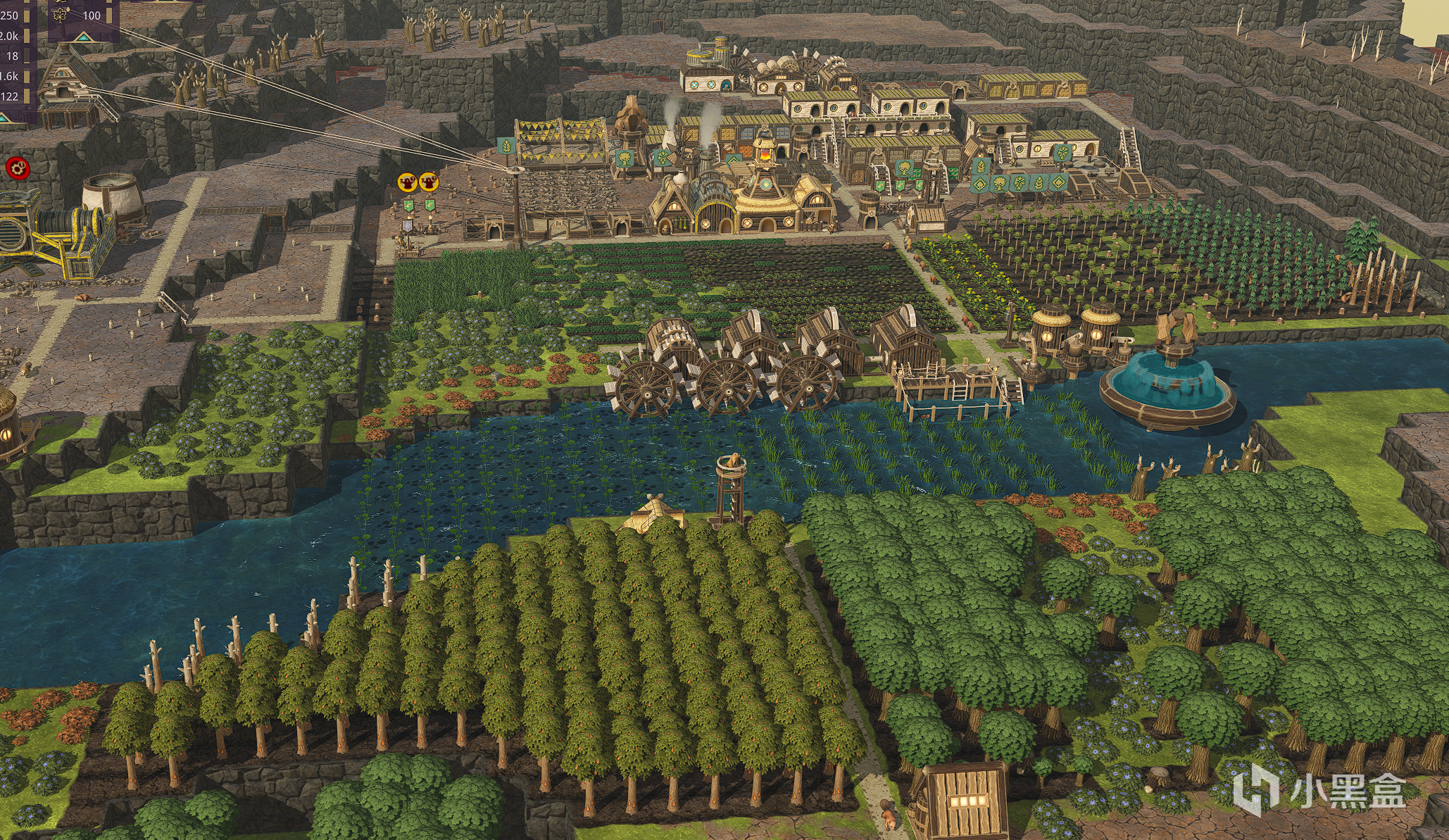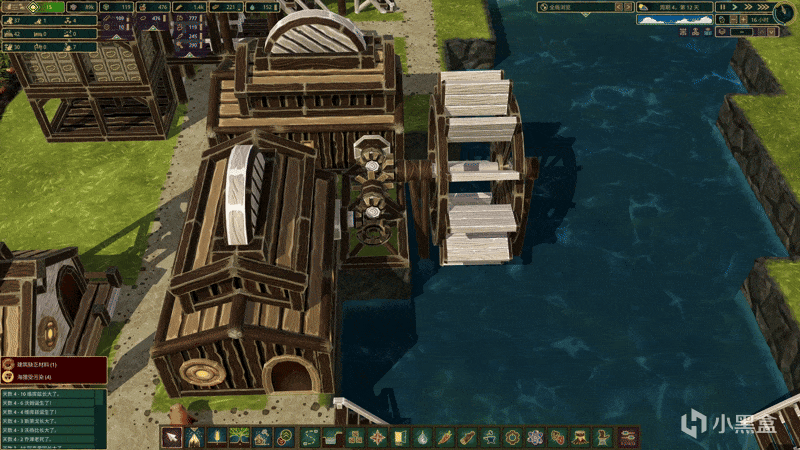 还有可通过水流来产出动力能量的“水轮”,只要有水流动的地方它便可以永久的工作下去。然后还可以在其周边部署一些需要用到能量的木制建筑,通过“能量传动轴”来把两个甚至几个建筑连接,使其可以工作来产出海狸需要的东西(木头变木板,木板变齿轮等)。