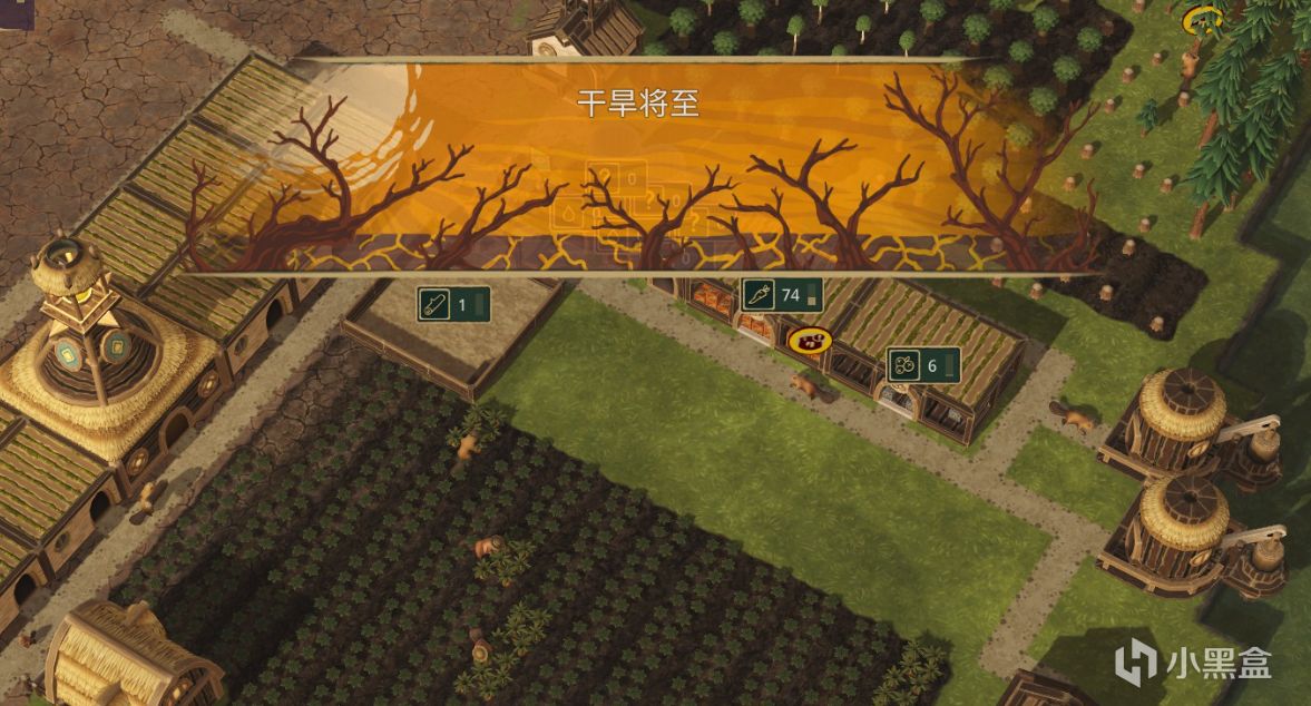 此时所有建造在河流边的水利建筑都会停摆,土地上种植的食物也会随着干旱天数的增加从而慢慢枯萎,海狸们也会慢慢因为缺水缺食物而面临死亡。这时候就需要用到之前玩家所囤积的食物以及水了,靠着这些食物来扛过此次的灾害。