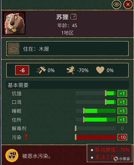 不仅农作物会枯萎,海狸的毛发一旦沾染了恶水便会开始生病,生病后的海狸不仅无法工作而且样貌还会变的狰狞,身体上也会长出恶心的红色斑点。