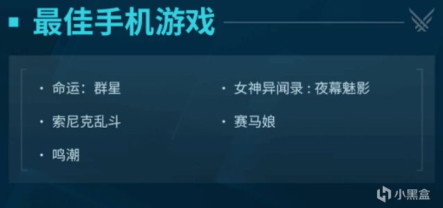2025年TGA颁奖典礼提名名单正式公布,最佳手游奖共有五款作品入围,分别是《命运:群星》《女神异闻录:夜幕魅影》《索尼克大乱斗》《赛马娘》以及国产游戏《鸣潮》。
