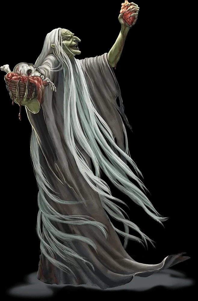 但是,这一切的前提是这位鬼婆足够强大,并拥有通过各种黑暗手段获取的渊博知识。而且,就算混入了宫廷,也不意味着鬼婆会变得友善且和蔼可亲——她们会对那些无力违抗的上级阿谀奉承,而对平级或下级则不断试探底线,让自己尽可能抒发扭曲的爱好。当然,如果鬼婆有机会对自己的上级取而代之,她们绝不会放过这些机会。