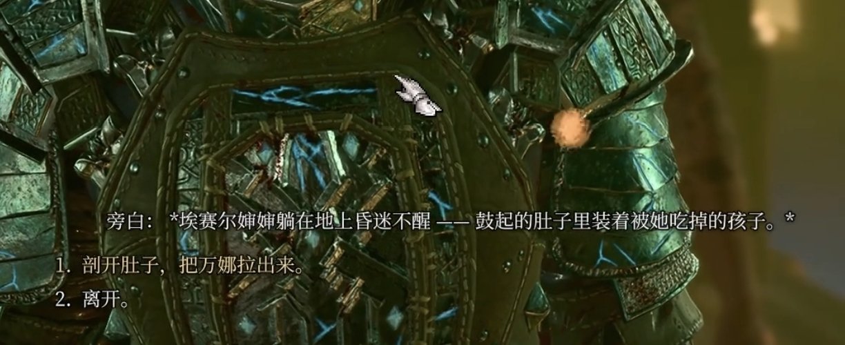 在游戏中,我们找埃塞尔婶婶治愈夺心魔蝌蚪时,她会要求我们抠出一只眼睛,替换为鬼婆之眼作为代价。实际上,“鬼婆之眼”这个法术并不需要扣掉我们的眼睛替换才能生效——换成一个眼球项链也可以。埃塞尔要我们一只眼球,纯属恶趣味、图一乐。