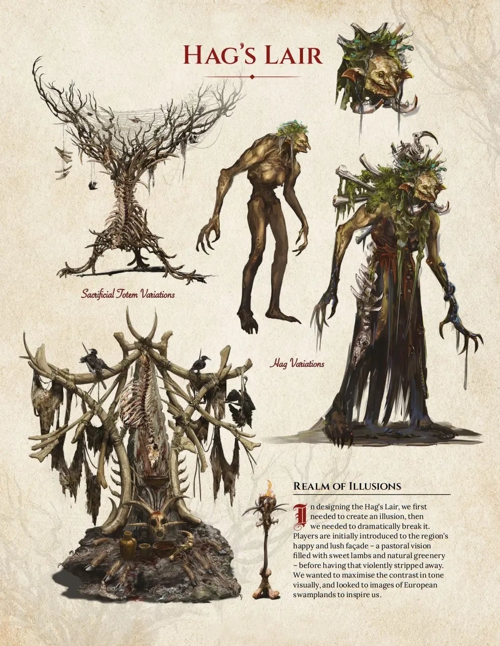 在《博德之门3》设定集中我们可以看到,作为一只绿鬼婆,埃塞尔婶婶偏爱将各种肢体残骸悬挂在自己干瘪的身体之上,并身披一件破烂不堪的袍子。