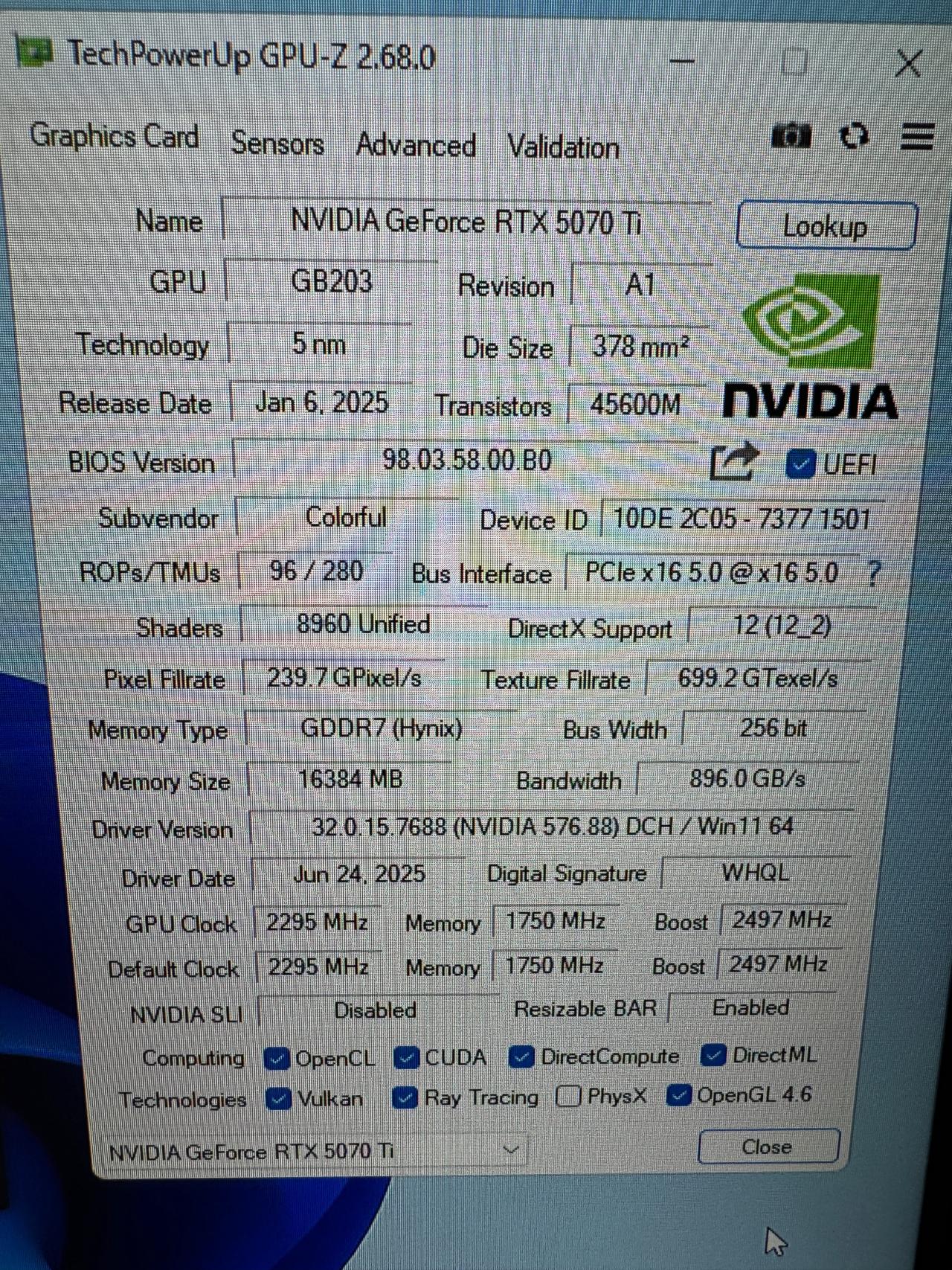 5070Ti GPU-Z ROPs数量均正常,显存是海力士颗粒。