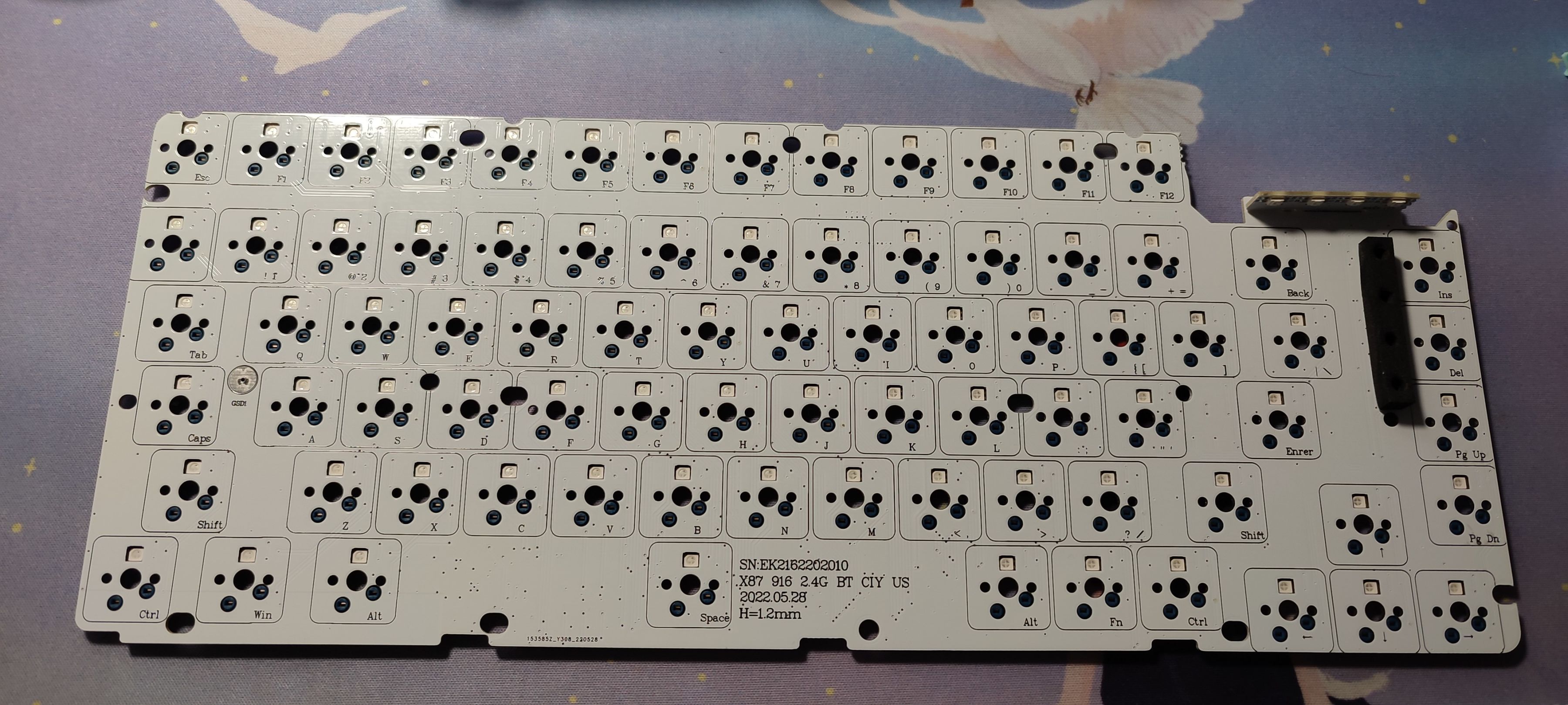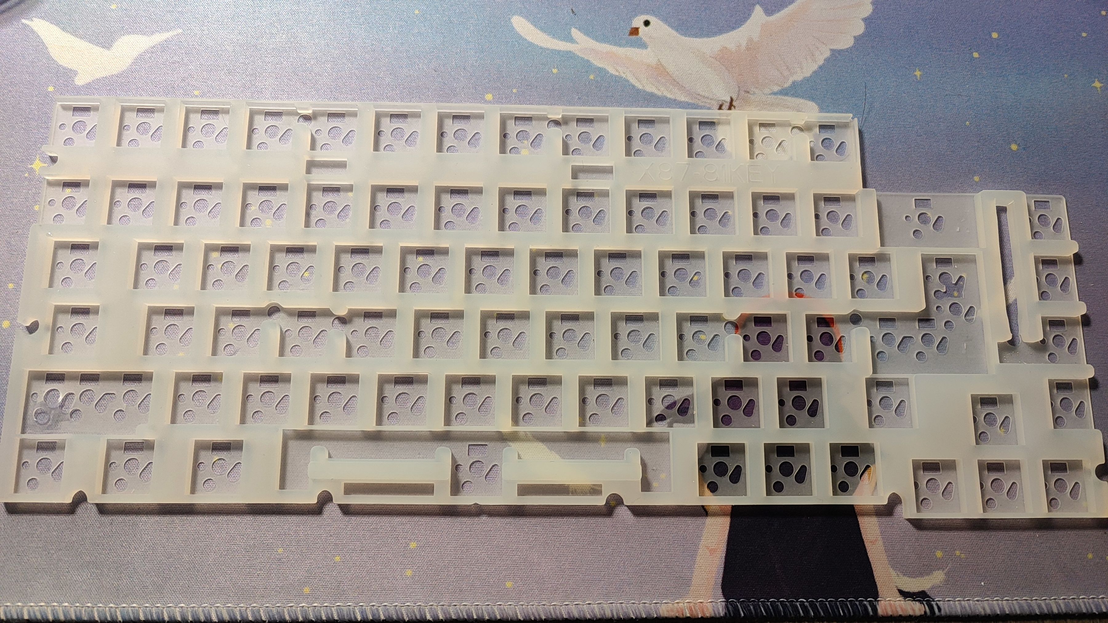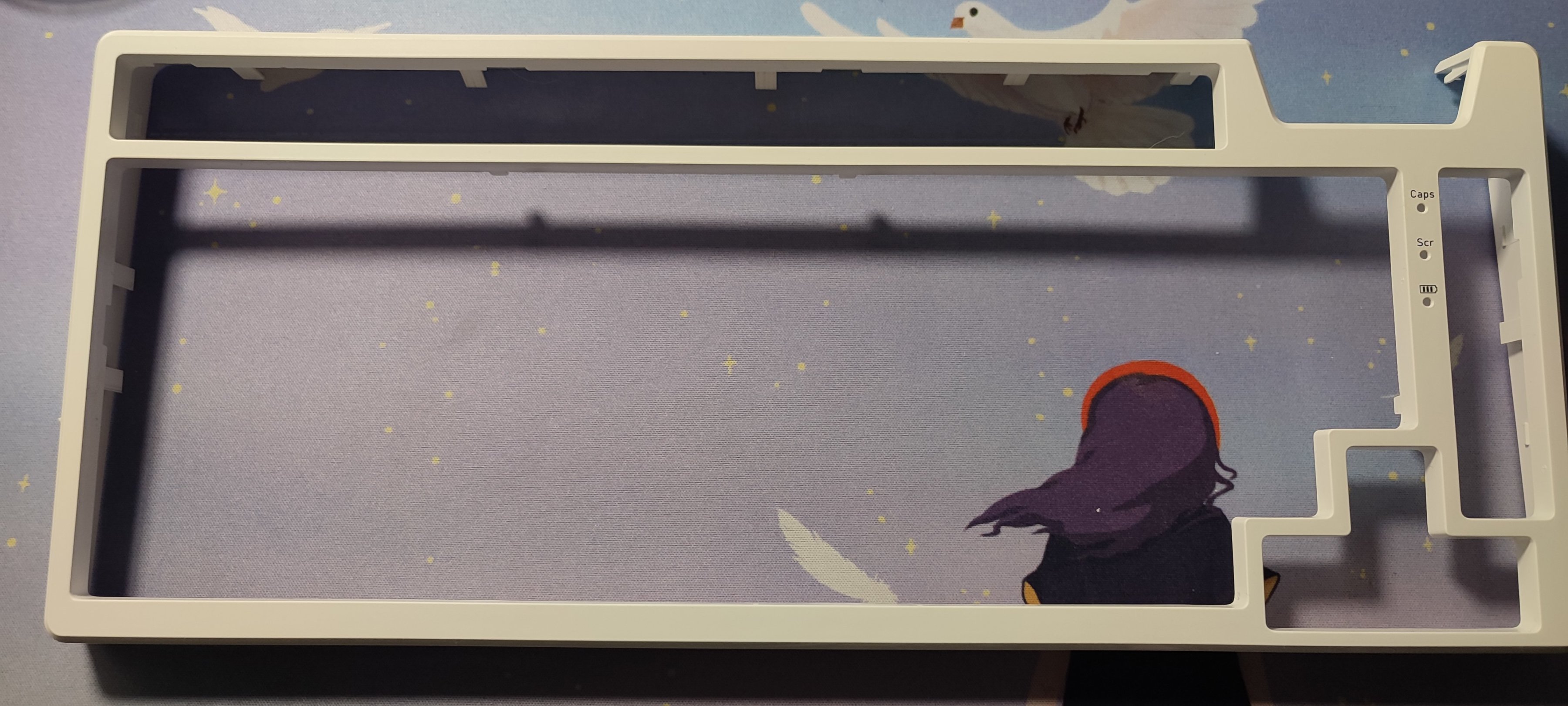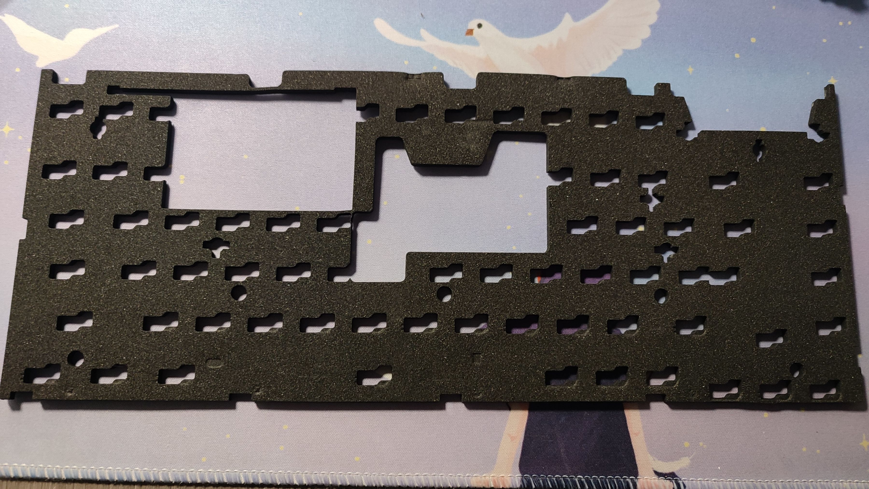 底棉或者说轴座棉,也是用来减轻键盘敲击时候的空腔音,不过也要为了其他东西让路,做的不是太厚。觉得有空腔音的可以自行再加一层底棉,不过要考虑下整体键盘的厚度,不能放太厚。