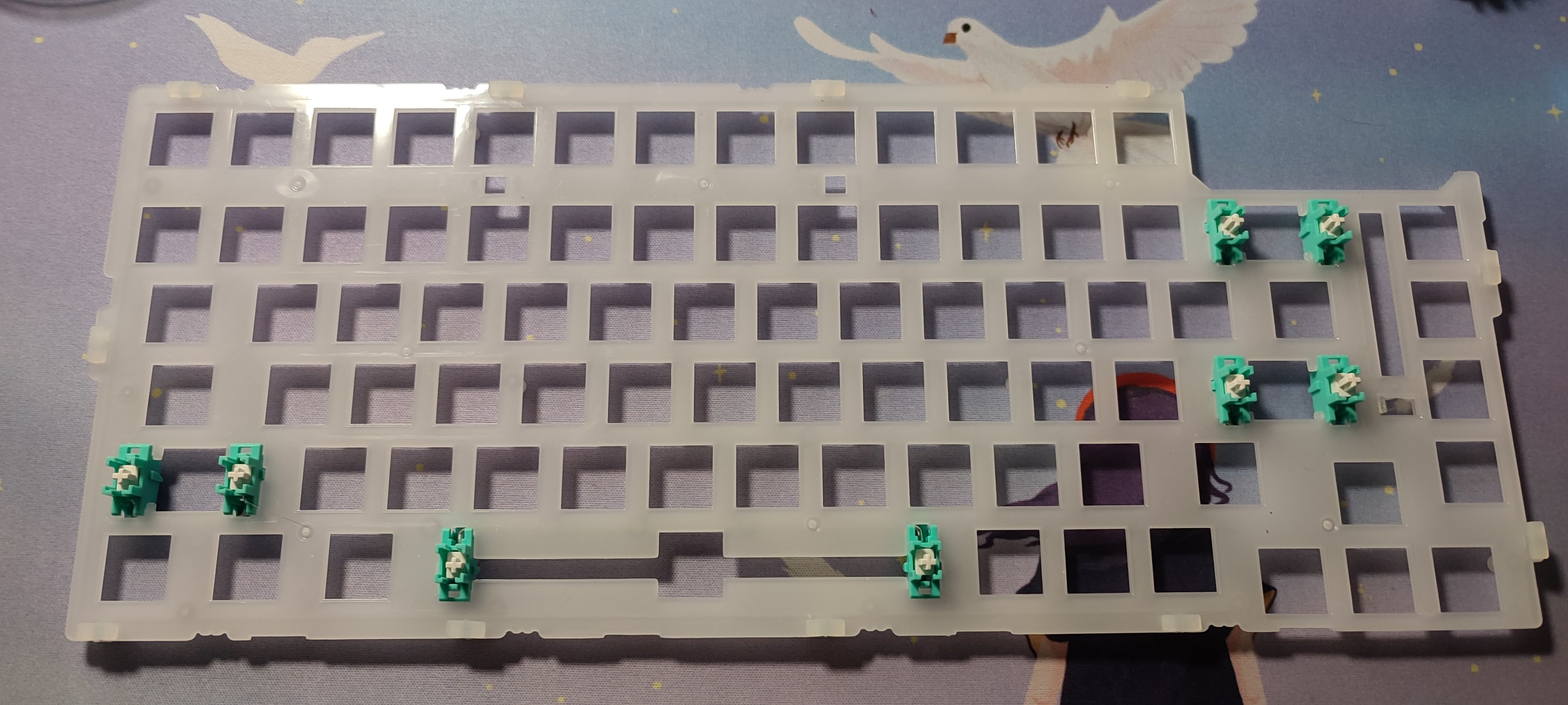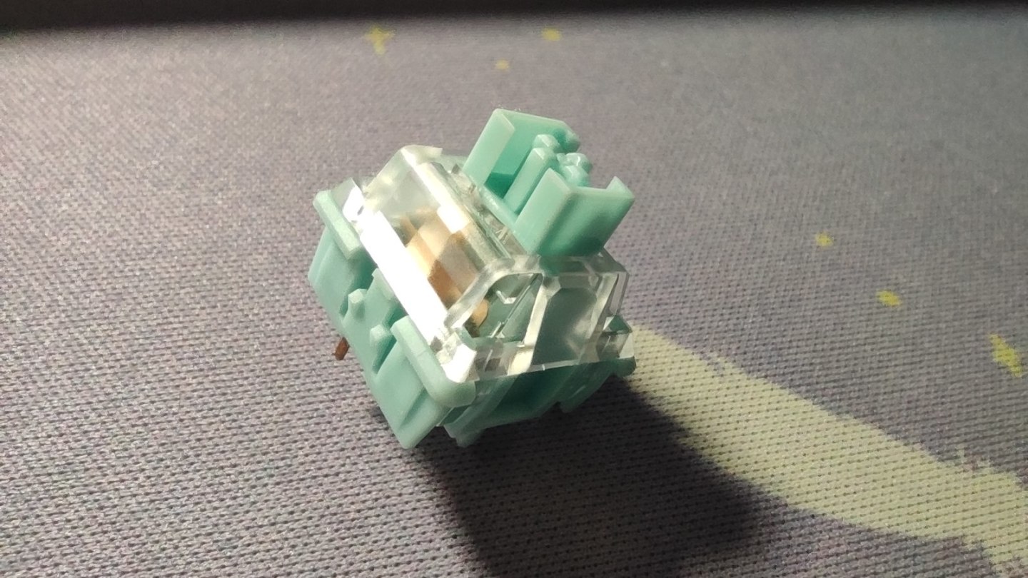 这几天的使用体验来说,这颗轴的手感很棒,每一次敲击都有明显的反馈感觉,不容易误触。轴心稳定性也是相当不错,在原装键帽的情况下,晃动键帽能感觉到的幅度并不是太大。并且相较于线性轴来说,段落轴的大键显得不太重要(卫星轴),不过我尝试换了个线性轴来试了下其大键,竟意想不到的不错,假轴跟定位板之间卡的很死,并且钢丝没有弯曲(没有听到钢丝音)
