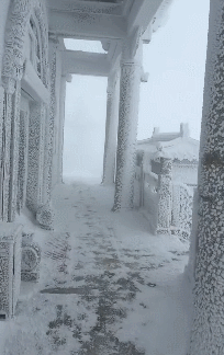 11月8日,山西忻州。五台山降雪,北台顶3061米的龙王殿出现美丽一幕,据悉,雪后能见度不足10米,气温或至零下44度。景区称已对该区实施限期半年的封控,其他区域正常开放
