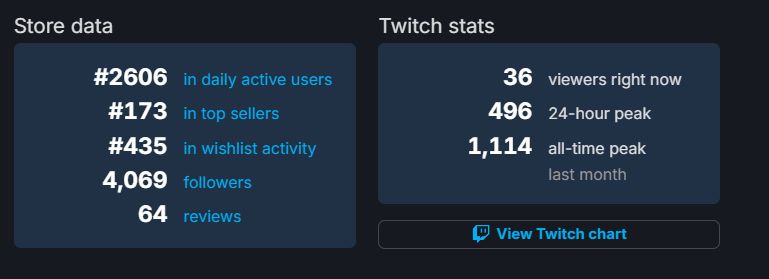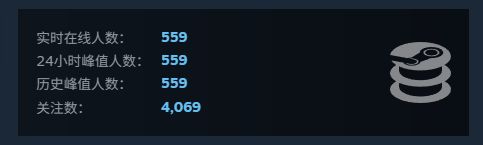 而本作首日的在线人数峰值仅有559人,愿望单关注有4k多,并且现在并不是周末,届时数据会有所上涨。
