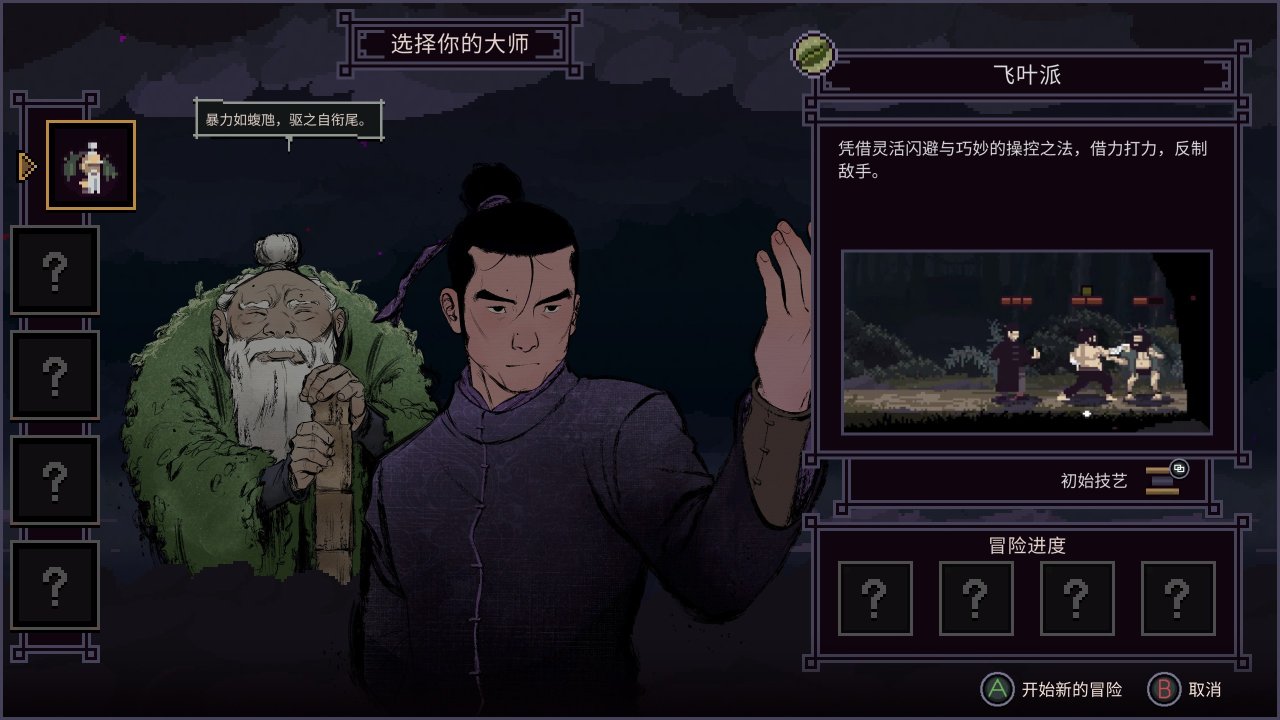 在昨日由Devolver Digital发行的关于中国武术的像素风动作游戏现已发售,看封面就非常有感觉,颇有大侠风范。