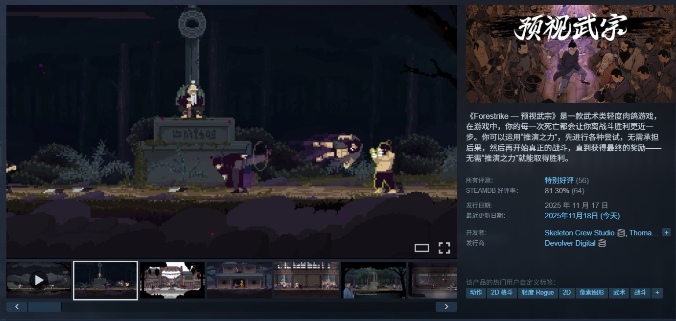 从销售表现来算是正常,毕竟没啥宣发资源,而且中国武术的题材本身就行小众,再加上游戏题材的限制,不能像隔壁《师父》那样有着爽快的打击感。