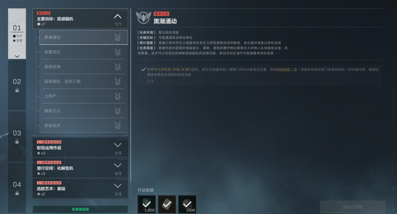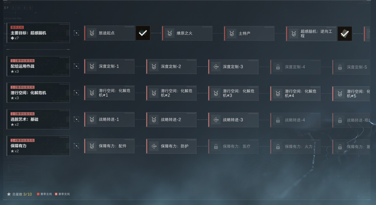 但對應的這賽季光說第一階段,主線任務裏面就是使用腦機在機密地圖之中就能夠很輕鬆地進行各種調查任務(除了會有人蹲任務點hhhh)並且支線任務選擇慢一點的話也不需要擊殺幹員,做做製造任務也能夠很輕鬆的湊齊六顆支線任務星級。