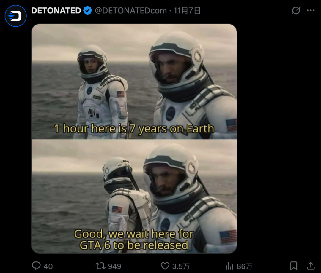 延期消息一出,R 星推文阅读量直接干到 1.6 亿。评论区里,大家也是苦中作乐,用梗麻醉自己。
