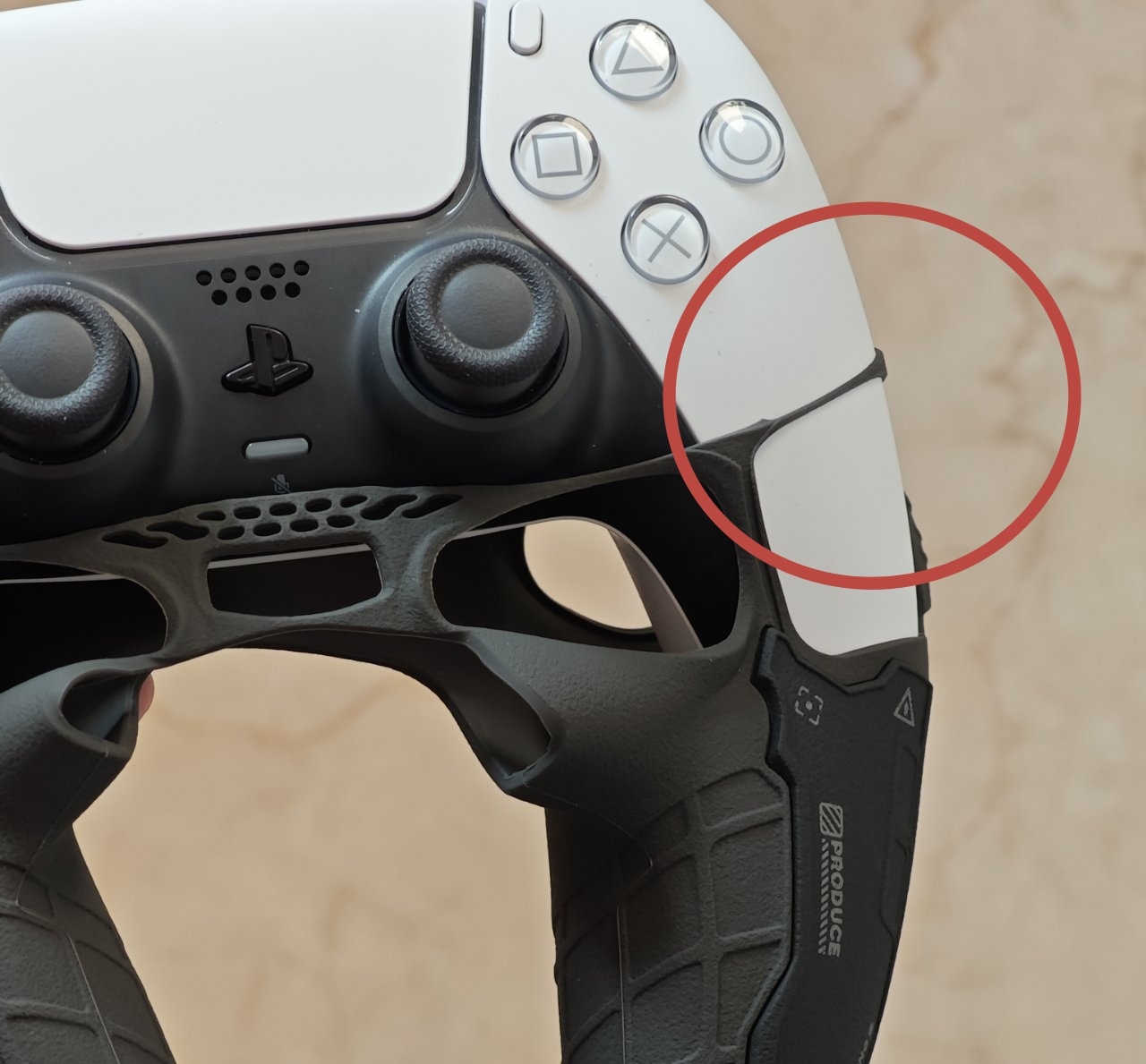另外就是好清理,毕竟再好看的手柄也架不住用久了出现污垢,大部分手柄只有中间的缝隙容易藏污纳垢,但是ds5不同,你放大看它握把背面会发现表面是雕刻了密密麻麻的圈叉三角纹理的。