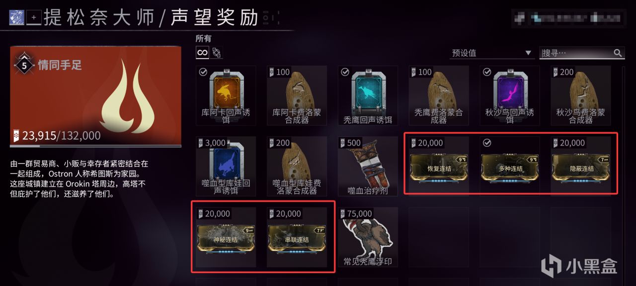 *建议是有啥用啥,能买结合的情况下优先买结合(可以通过大黄脸中枢Simaris 声望进行升级)