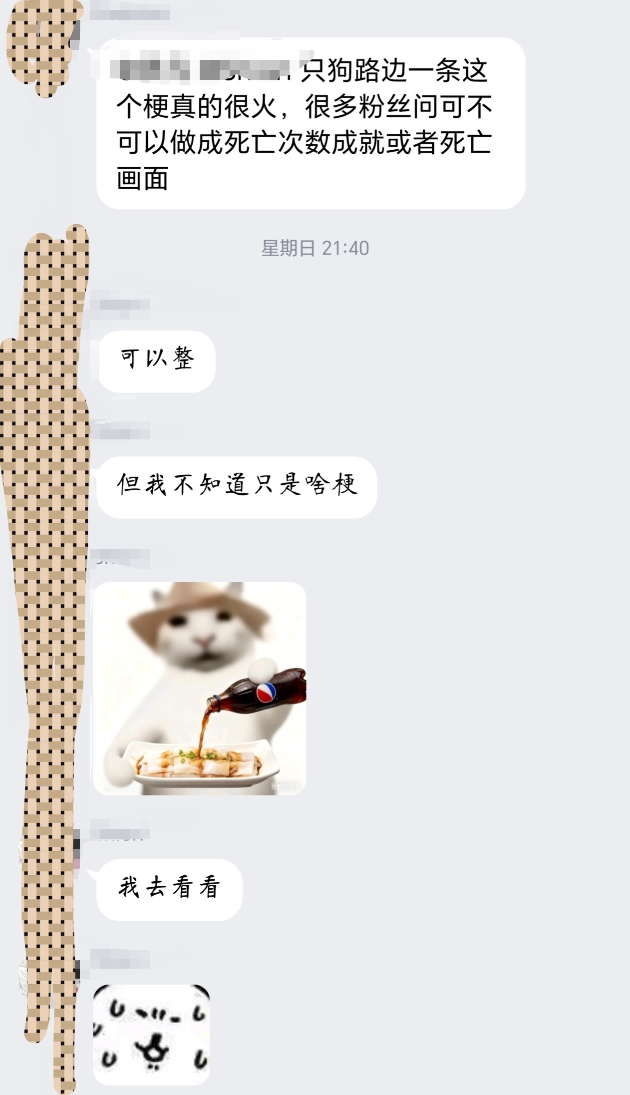 之前4000盒友点赞的死狗:路边一条,在周末当天我们就讨论过要不要融入游戏,改名确实是有计划,但最终还是决定不改名——