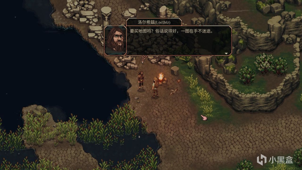 在这里,你会沿途遇到一个商人,他手上有一张详细的世界地图,需要200金币,即使前期你身上,也可以赊账,下次遇到他再还钱。