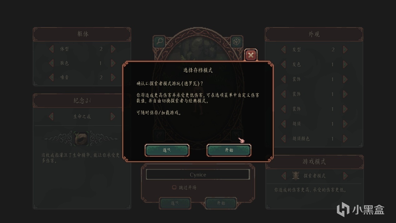 难度方面,难度依次递增分别是探索者模式、经典模式以及疯狂模式,第一次玩还是建议选探索者模式,即使是最低难度,前期我们就会遇到很多属性越级的怪物,就够我们吃一壶了的。