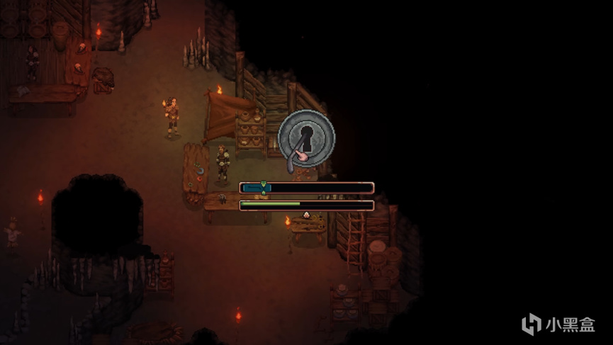 《Drova》的像素美术采用深邃、神秘的复古风格,虽是像素风,但不是16-bit那种非常简单、色块极少的风格,制作组对于地图场景各个元素的绘制都非常细腻,夜晚对于光影的塑造也是不错的。如果不仔细看,还真有点看不出是像素画风。