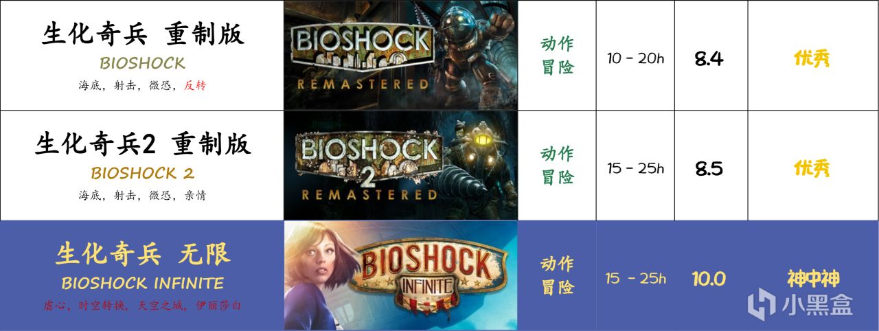 这就是系列的全部作品,是不是听起来相当简单?虽然没法详细阐述(不然本文就变成生化奇兵专题了),但有一点我是可以保证的,就是无论哪一部,剧情都不会让你失望。