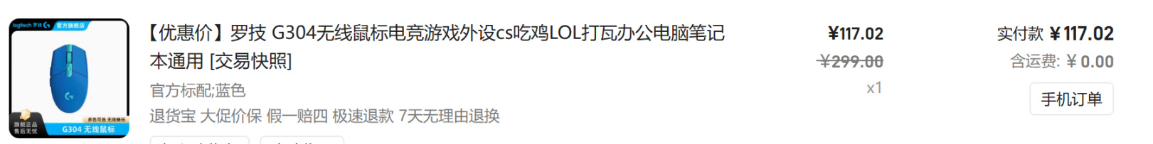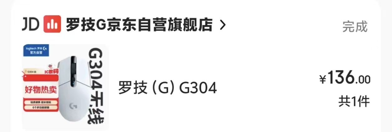 再往下就是G102了,有线,百元内,从2005年的G1迭代到现在,经得起时代的考验,并且品控要比G304好很多,之前打游戏上头了狠狠砸了几次,一点毛病都没有。