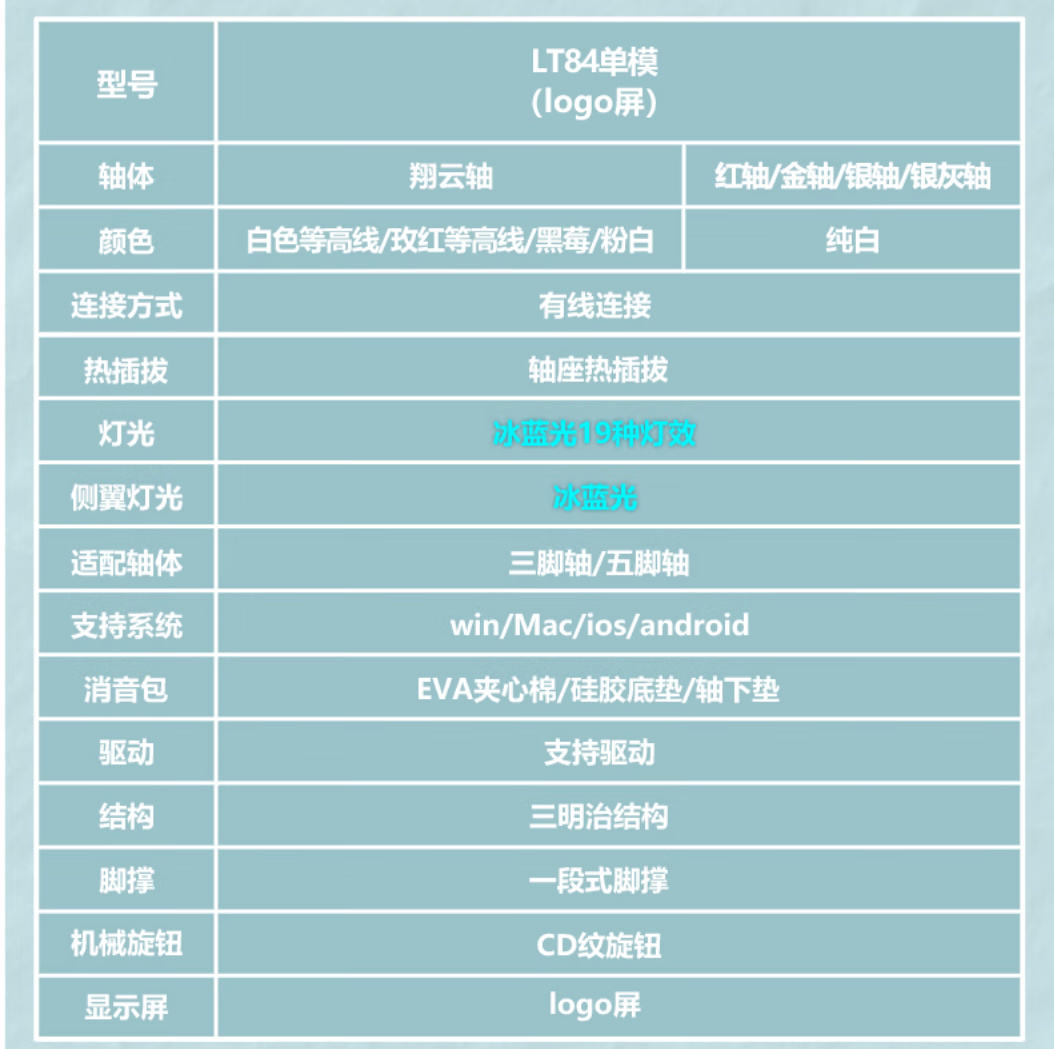 轴体目前给到KTT静音轴、晶粉轴、风信紫轴以及静音茶轴,每个配色版本都能对应相应轴体,并不和SKU捆绑,这点好评。