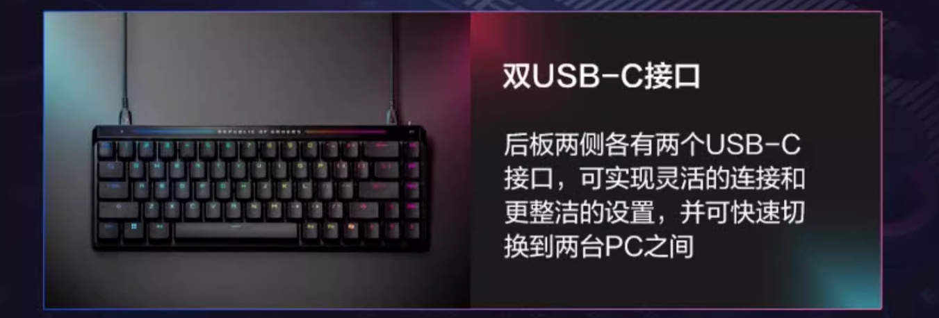 两个USB接口就能很好解决问题,哪里近就接哪个口。并且还支持双设备接入,快速切换输入设备。