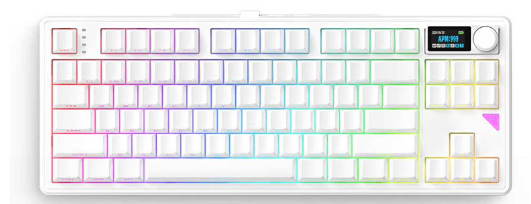 并且相对于F87 PRO初代,F87 PROV2额外的小设计增加得特别多,模具也有挺多改变,可以说摆脱了公模键盘外观太过普通的毛病。