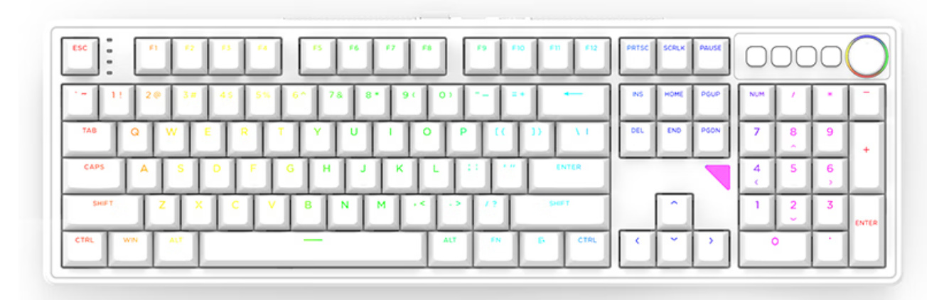 但是,它是大配列+磁轴,这就很好玩了!有完整的F键区,有独立数字键盘区域,甚至连0键都是2U的规格,这你受得了吗?