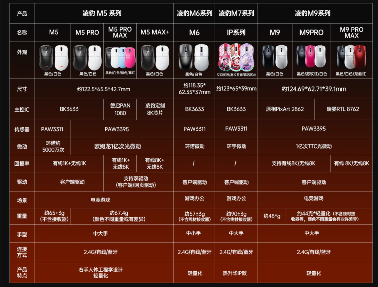 和ATK类似,凌豹也根据模具类型整了个“M系宇宙”,从M5一路到M9。