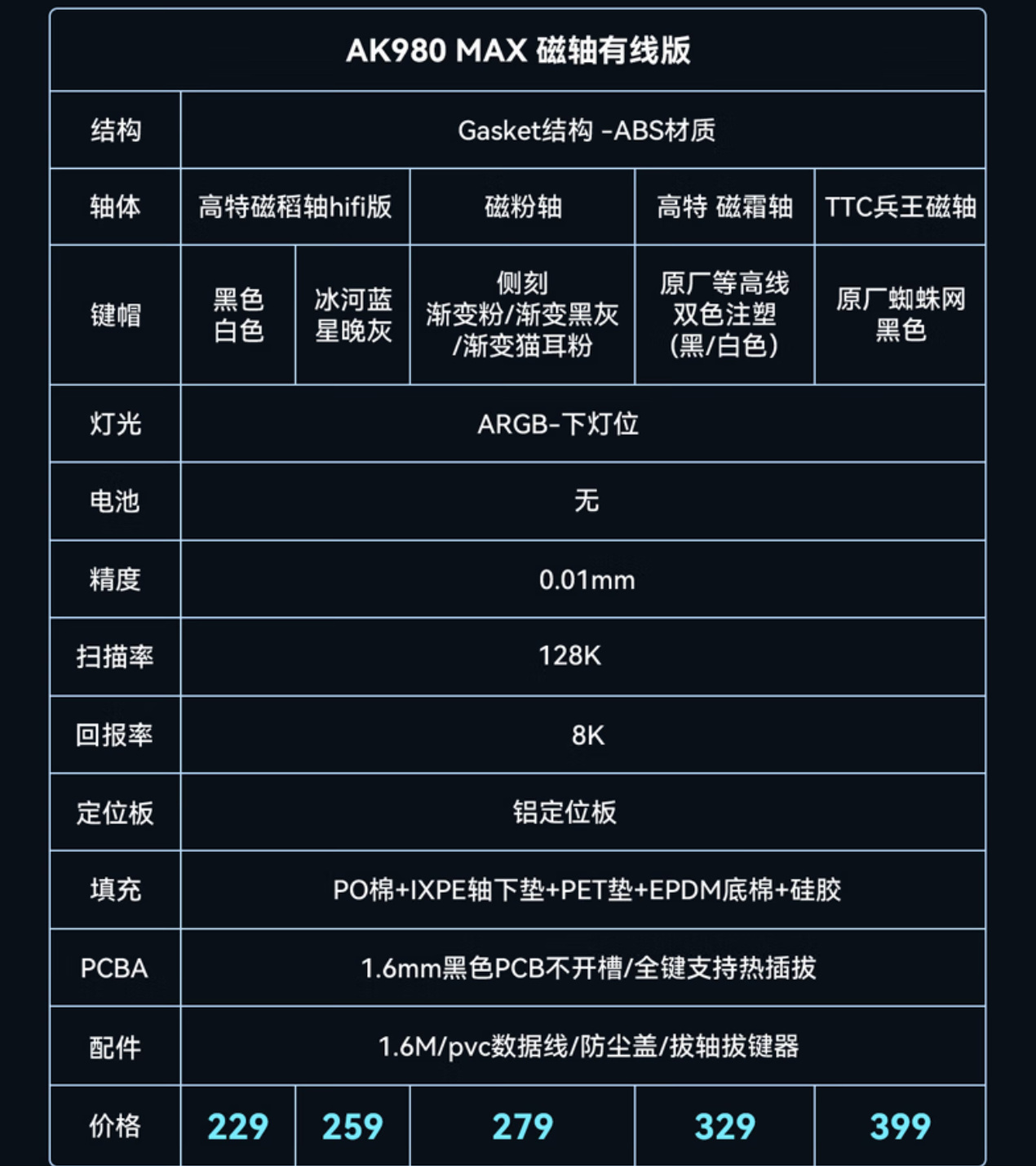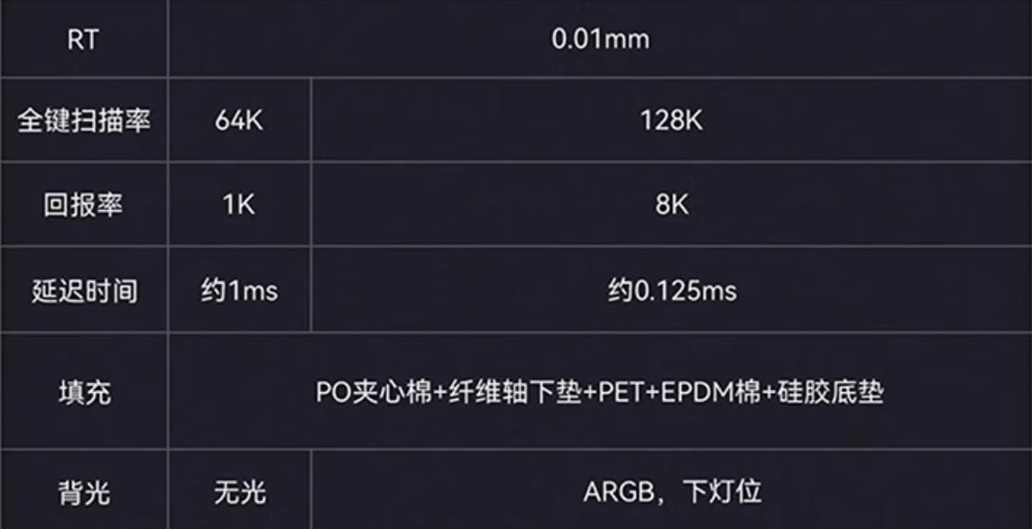 当然,预算再加个50~60块钱,Alux 60 Plus版本,配置就到顶了,128KHz全键扫描率、8KHz回报率,理论延迟也很低。
