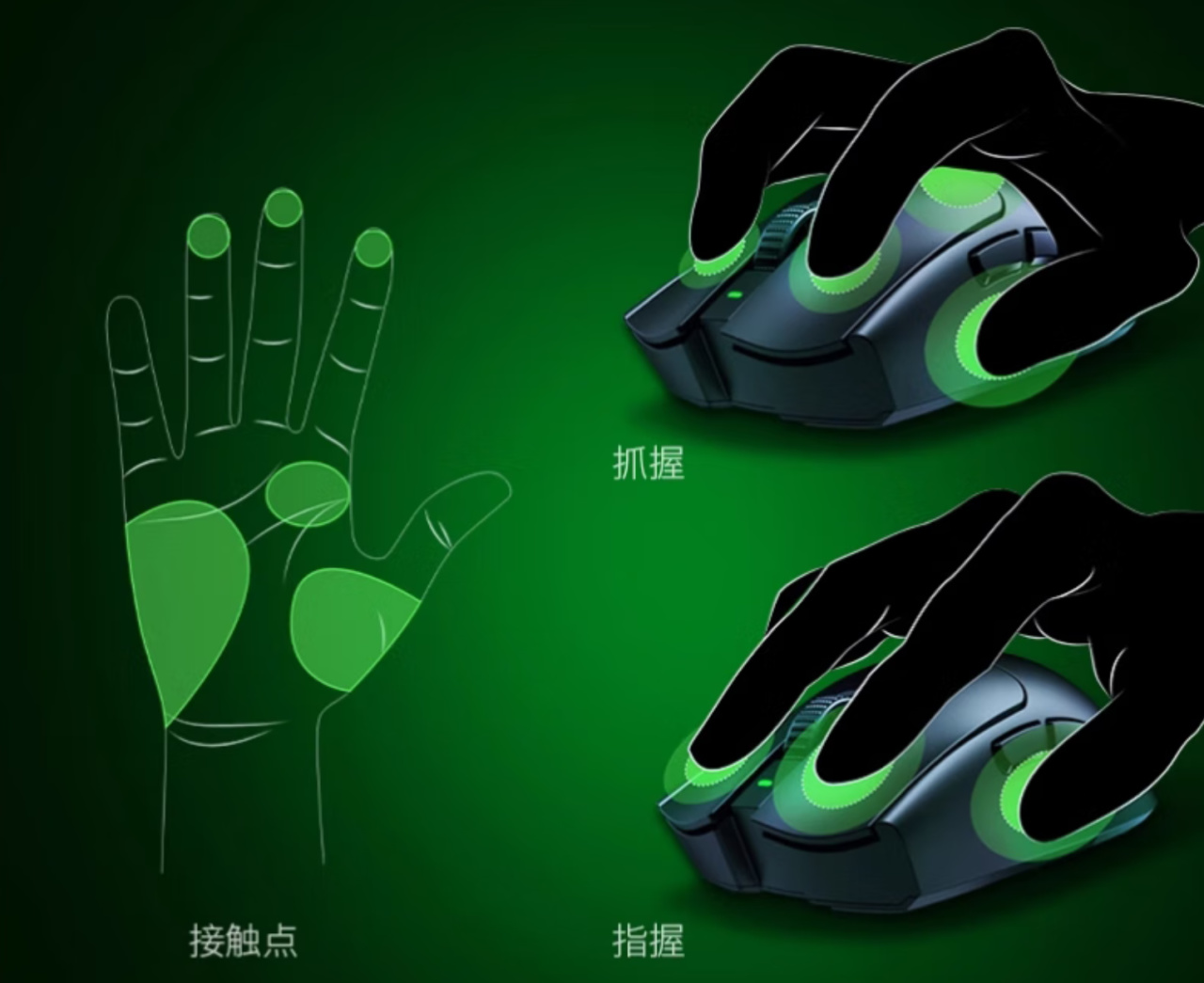 当手掌自然放置鼠标上时,它能给手掌最大的接触和支撑,较为适合趴握。大范围的自然接触也使其在长时间游玩会相对舒适。