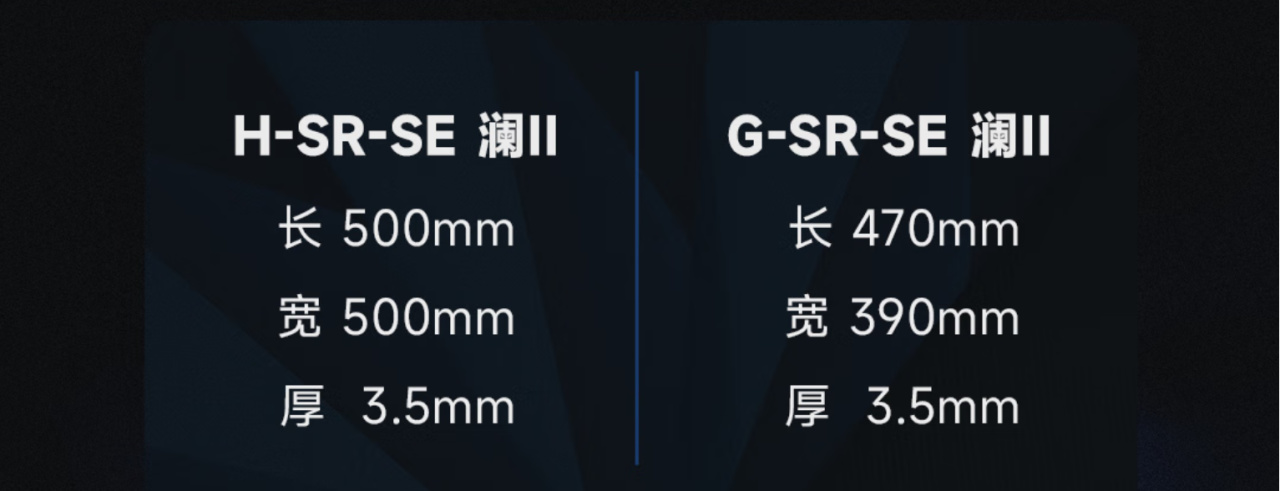 首先,澜分为H和G两种规格,G为299元,H则为349元。G的规格比较偏向于常规垫子的4:3比例,适用性比较广。桌面比较大,或者低敏压枪流,可以看H,500*500mm。