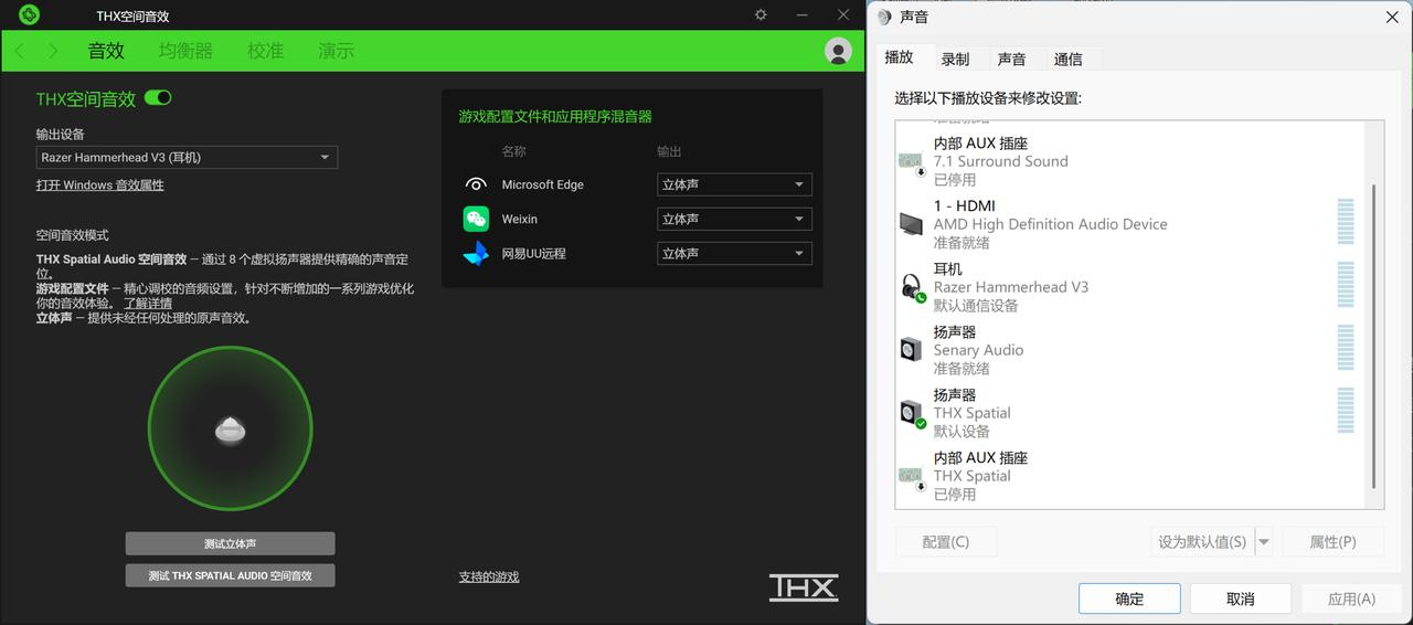 在V3这儿雷云本体用处不大,得上THX空间音效,一个独立的软件。除了雷云支持的虚拟7.1声道外,还可以调节EQ,自定义声音远景等等。