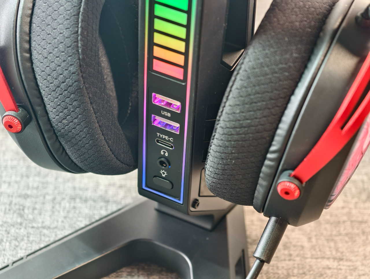值得注意的是,作为有线耳机的它接口是单USB-C,如果直接用USB口的话,功能是完善的,声音和麦都没问题,但如果用的是3.5mm转USB-C那则会失去光效和麦克风功能,仅保留声音。