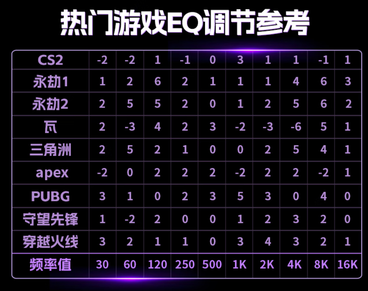 官方在基本的调音设置上给了一个热门游戏调音参考,PRO版用户福音。