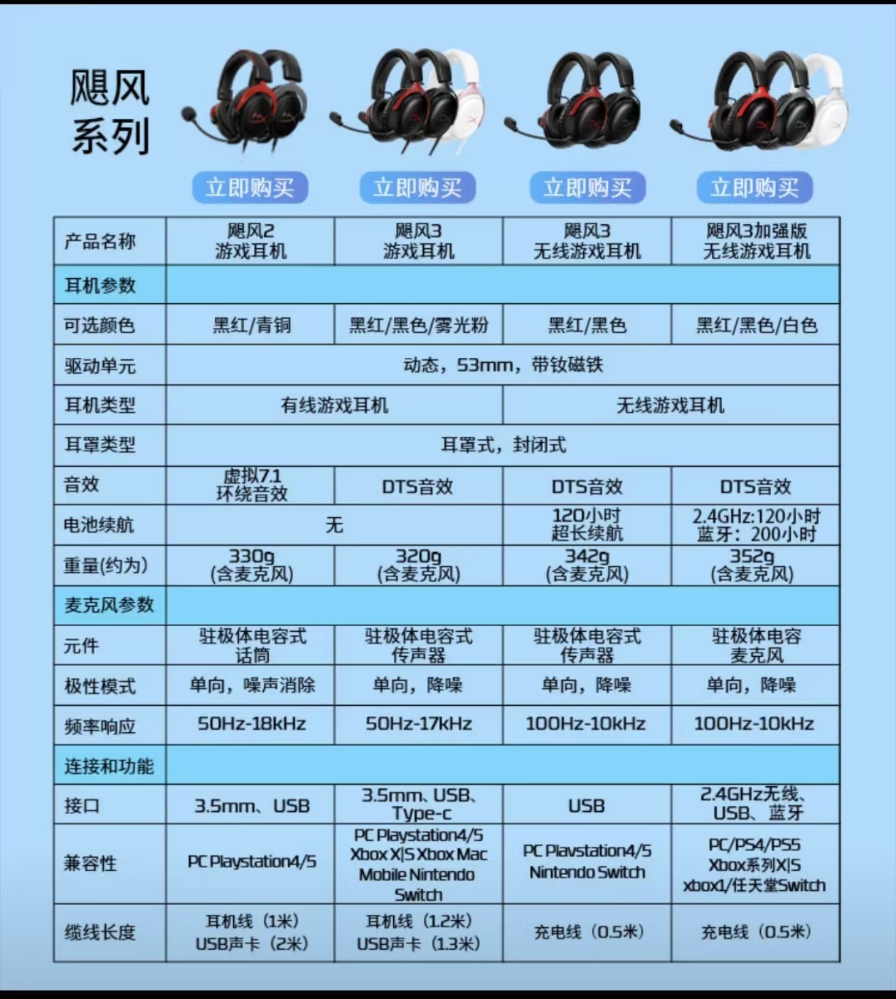说到游戏耳机,尤其是头戴式游戏耳机,当然离不开飓风系列。现在已经更新到第三代了,二代目前价格是439起,三代则更贵一些,549起。