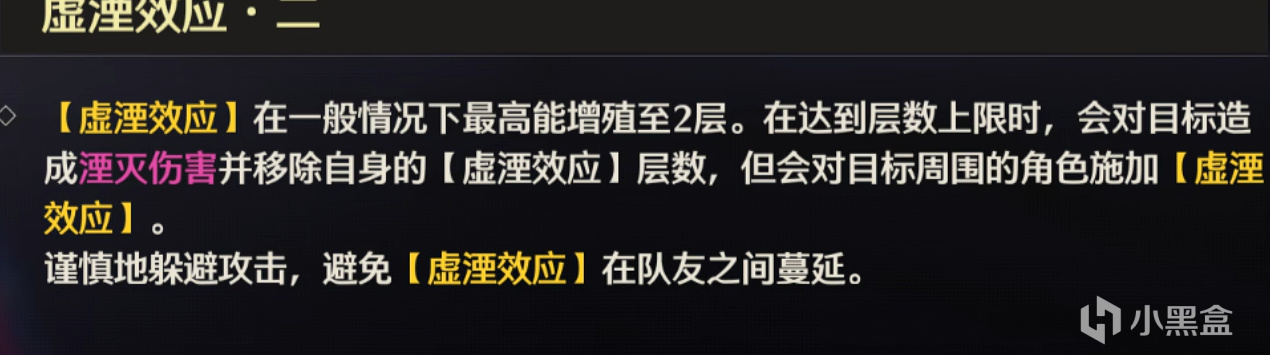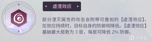 首先是虚湮效应,之前的虚湮是两层上限后造成湮灭伤害并且能传染,新版重做了整体效果,最高层数三层,每层可降低2%防御,最高降低6%防御,虽说无视防御这种BUFF是高贵的乘区,但这个数值是不是给的有点太低了?