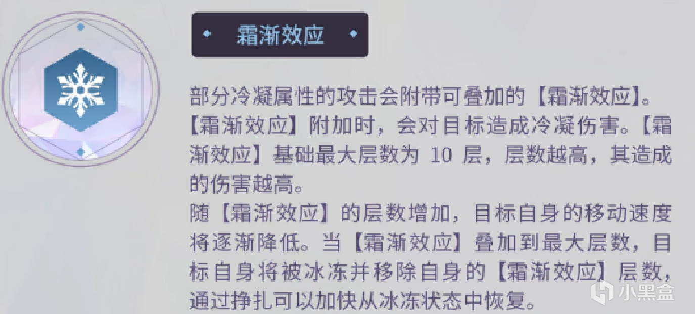 霜渐效应,先前是叠到最大层数会直接被冰冻,并没有伤害,现在的霜渐效应附加时会对敌人造成伤害,基础最大层数十层,并且随着层数的增加,受影响的目标会逐渐减速,满层冰冻并移出效果这方面和先前是一样的,纯加强,冰蚊子在洞里趴着突然就喝到汤了。