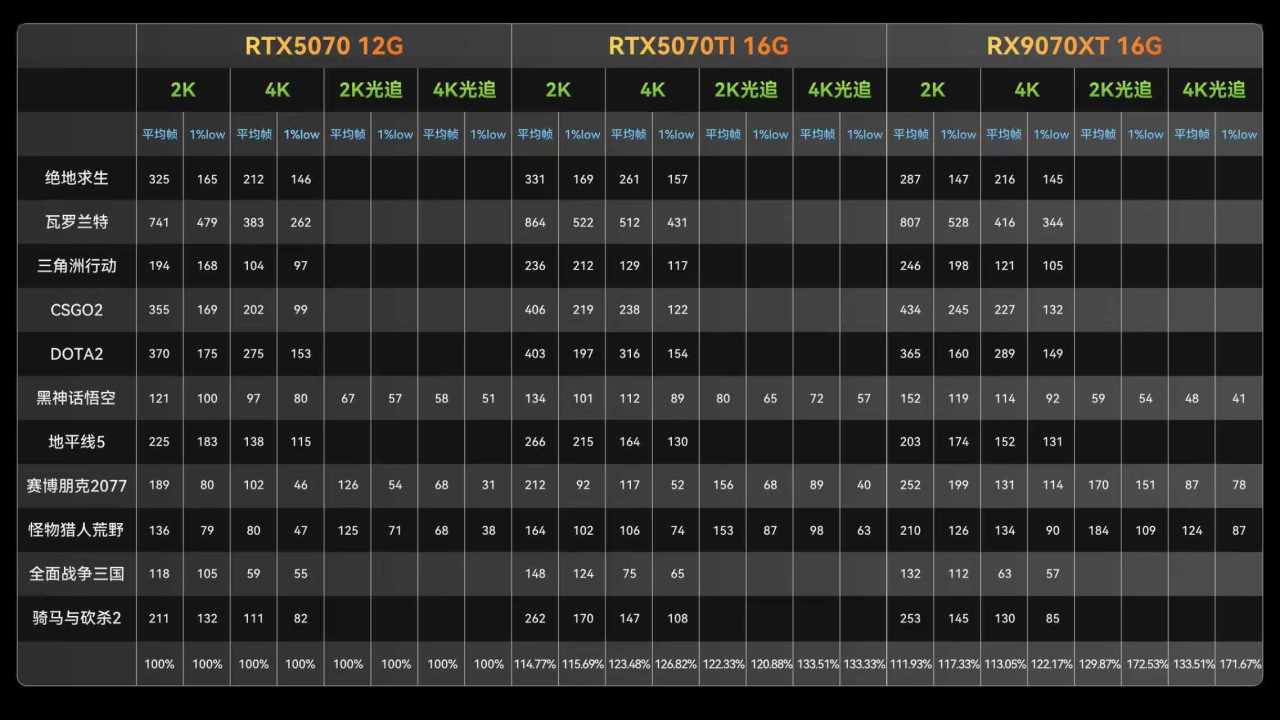 这个阶段的评测才是这三张显卡最完整的状态,不管是 NVIDIA 的 DLSS 3.5 驱动,还是 AMD 针对 9070XT 优化的 FSR 4.0,都磨得明明白白,早已不是刚上市时“驱动踩坑、游戏掉帧”的状态了。现在测它们,才是最贴近咱们实际买回去用的真实表现,不存在 “买个期货等优化” 的糟心情况。