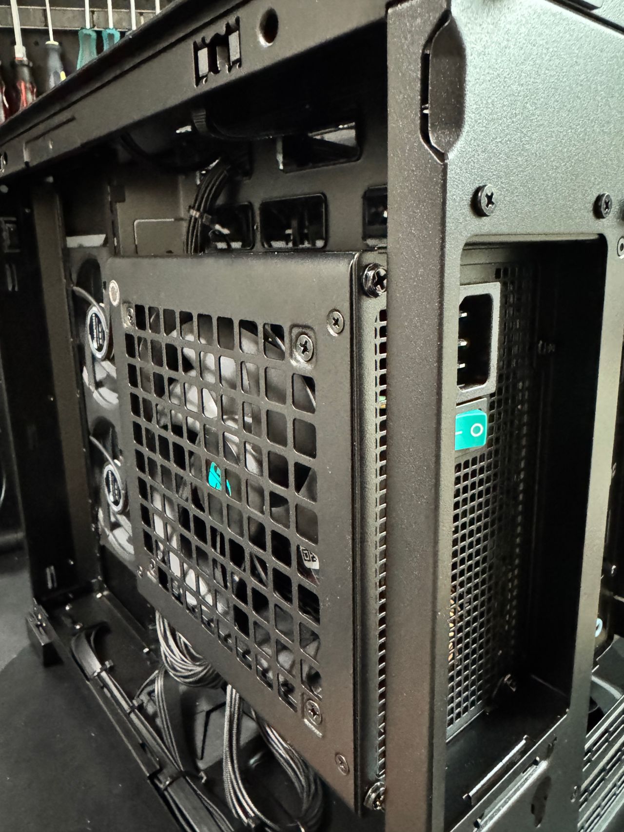 注意电源风扇朝向,顺便把电源上的开关,按到 I 是开,O是关闭。