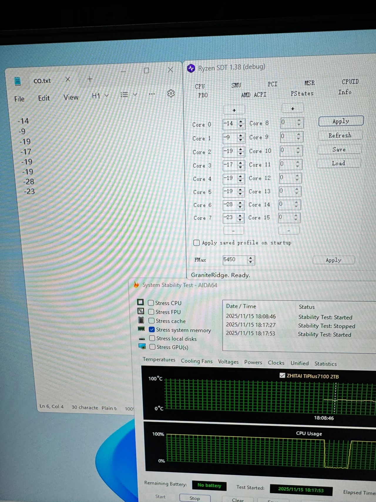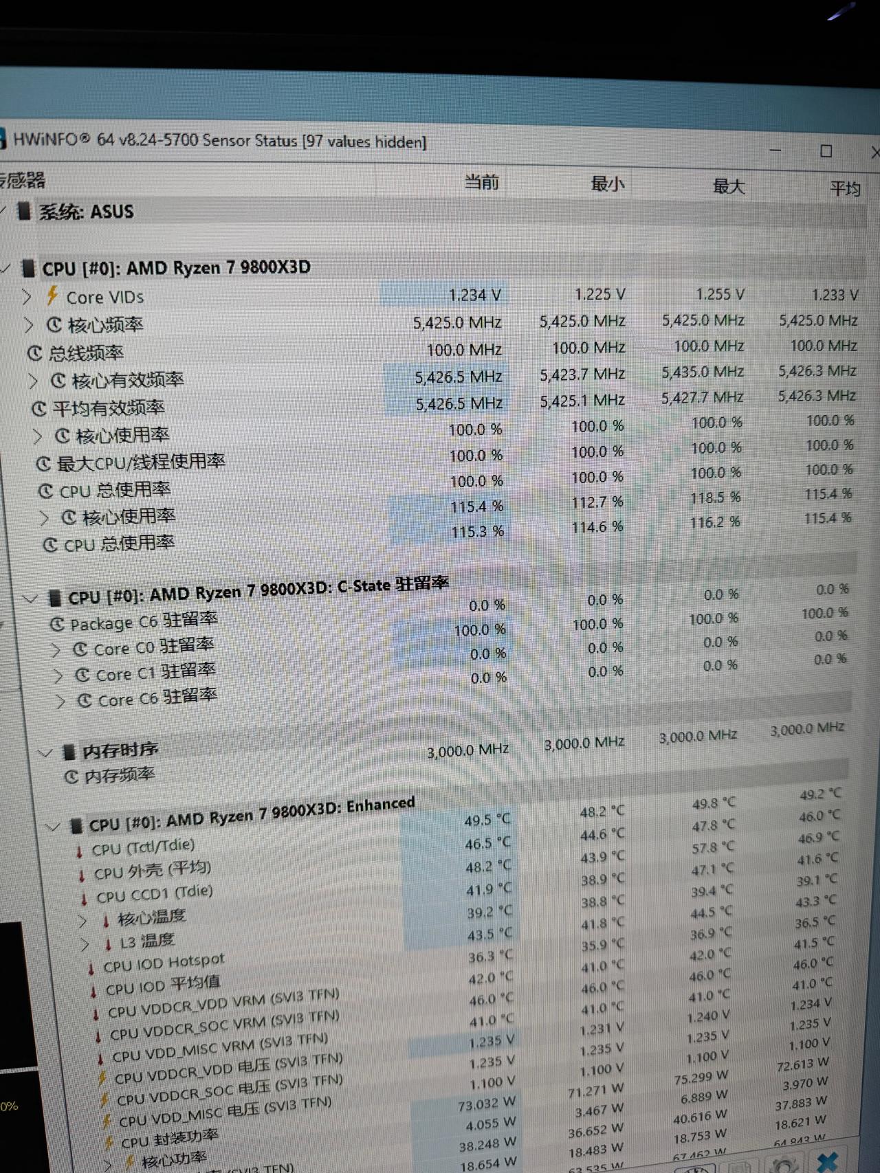 室温22.4 度,游戏加加 跑满5425MHz 各项温度均正常。