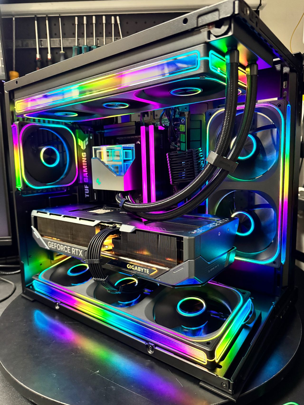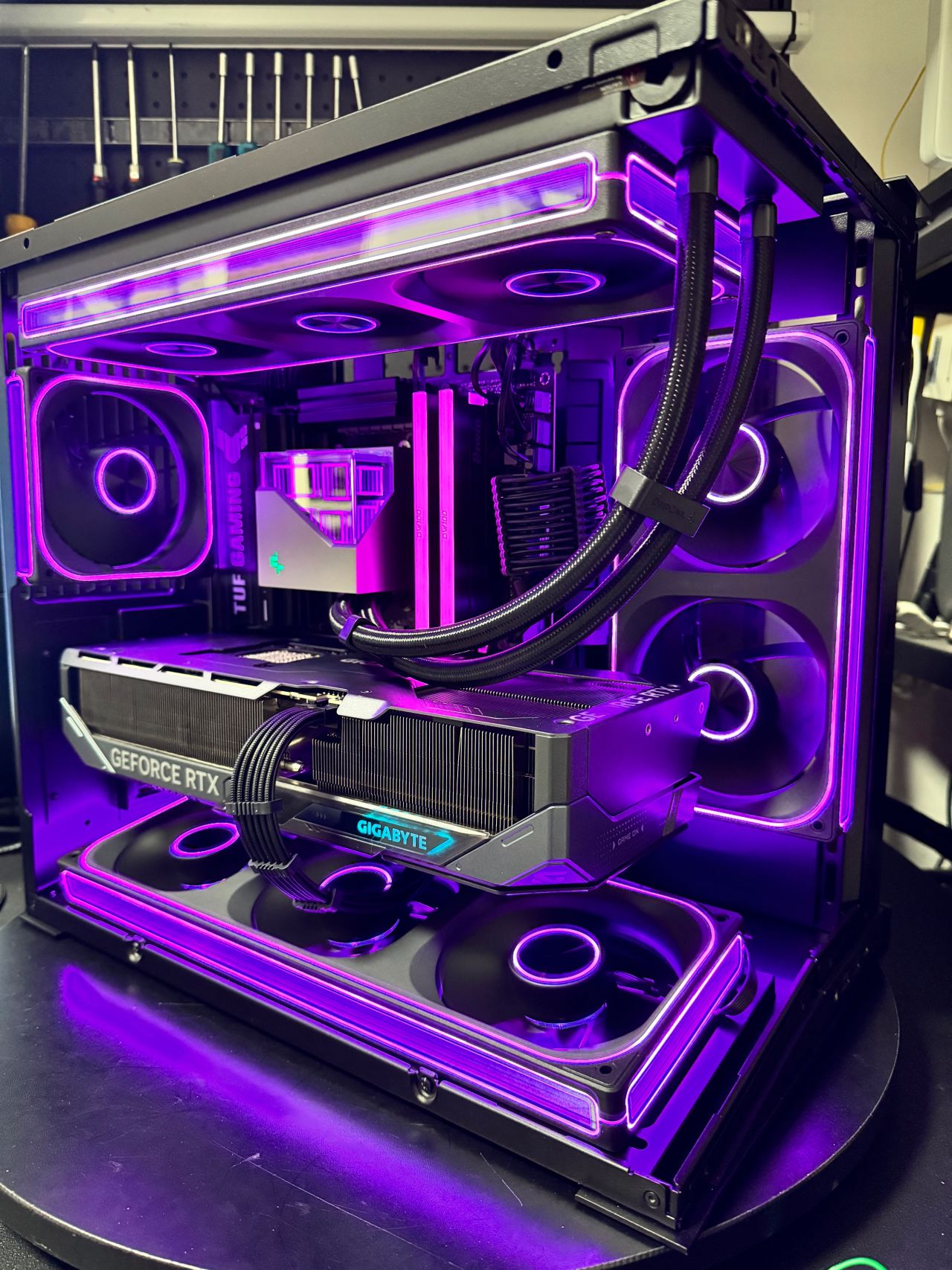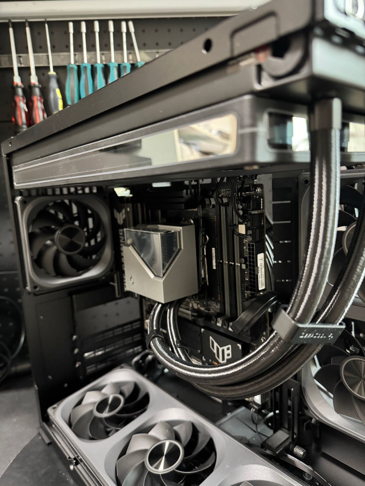 没有什么太花里胡哨的东西,单纯性能与颜值共存,准确来说性能大于颜值,对于这款机箱来说,装满风扇配上MATX主板感觉正正好,底部风扇斜角10度,再配上70厘米厚度的大号显卡,不会有空空的感觉。机箱与风扇又没有超出太多预算,有需求的盒友可以参考这套方案。
