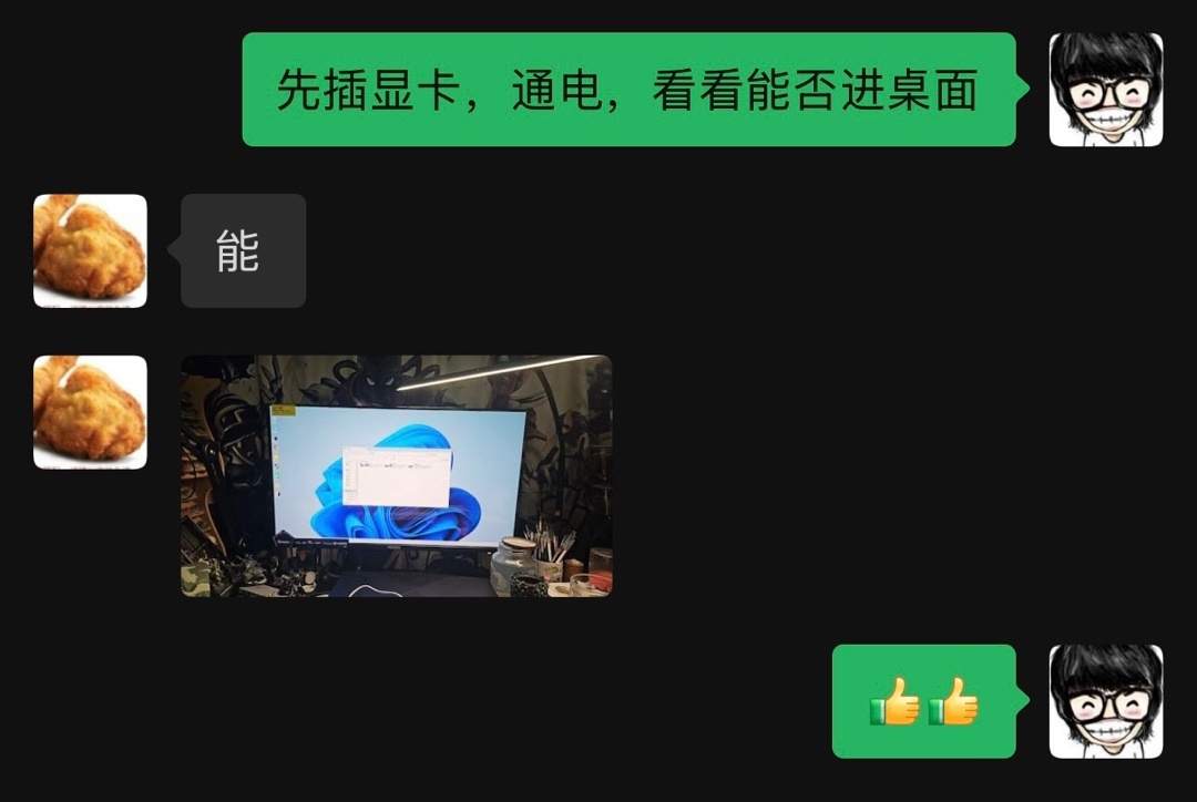 盒友是十月底联系的我,从硬件到显示器咨询了一遍,就没下文了,上周突然加我绿泡泡了,直接定下了之前写的这套方案,当时内存还没有现在这么高的价格,但最后还是按照十月底的内存价格给了这位盒友。