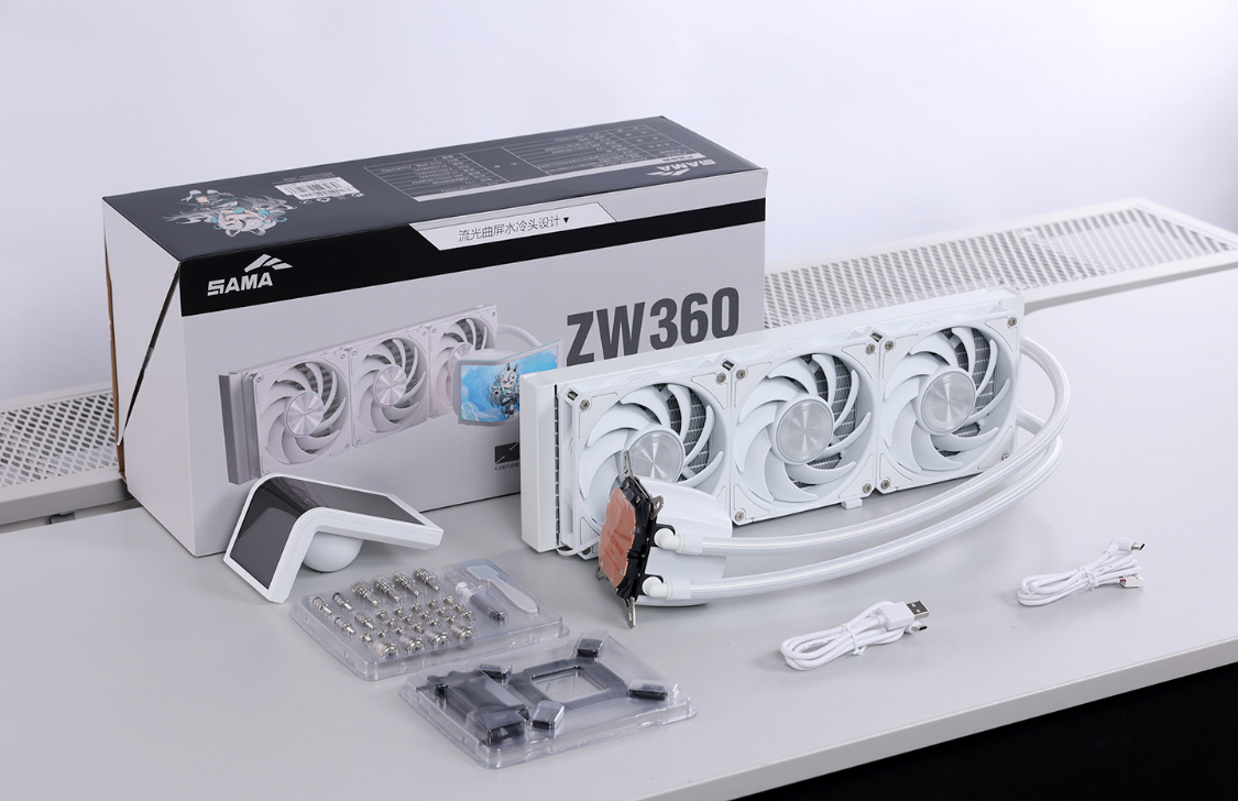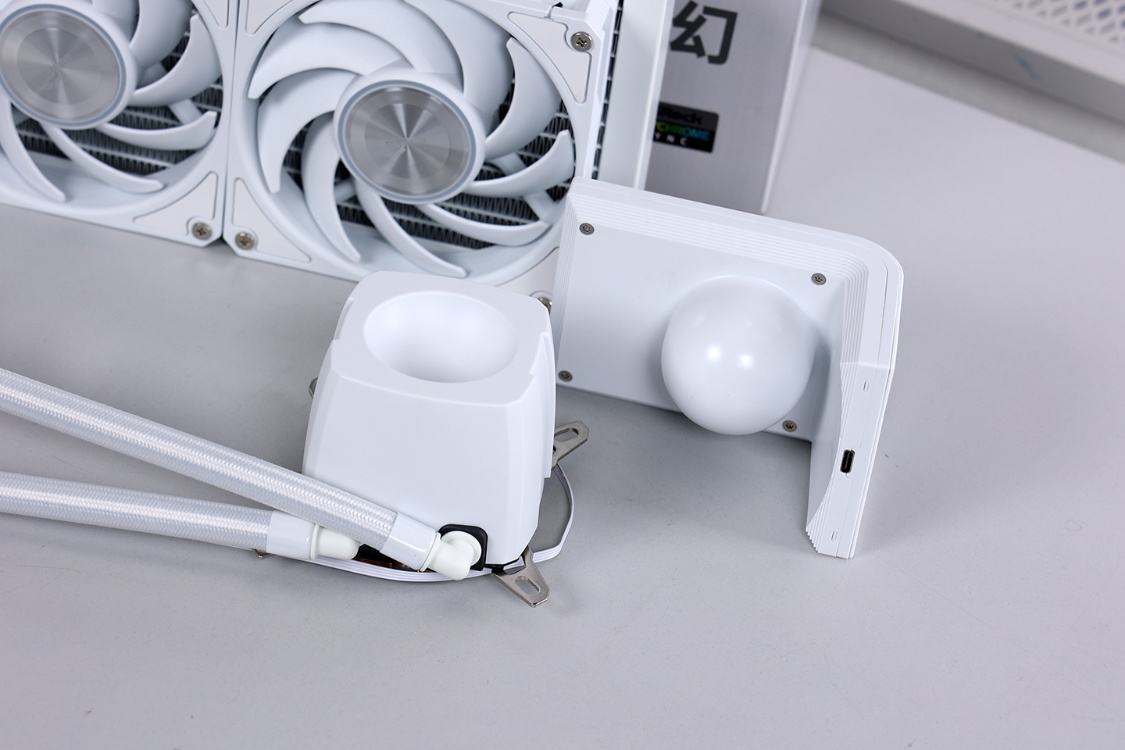 散热方面,曲面屏水冷就是决定的顶流,今儿装机选配的是先马新品锋幻ZW360 Ultra 白色一体式水冷。水冷出厂预装3把XT120-L风扇,采用高转速马达和静音轴承,最高可达2500±10%RPM的转速,最大可提供77.2CFM的风量、3.35mmH2O的风压,而满载运行时的噪音仅有35分贝左右。铝合金材质风扇贴质感拉满,风扇贴外缘是ARGB灯效区,灯效方面相当克制。