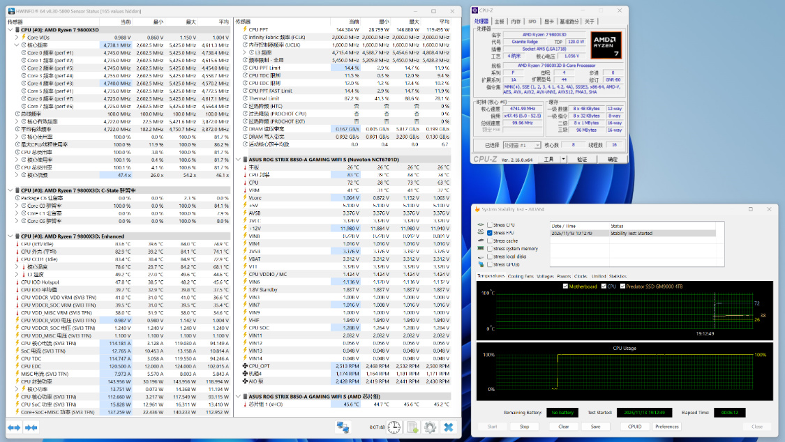 双11下车的板U套装,眼下来看,含金量还在上升。8核心16线程,最高加速频率5.2GHz的9800X3D处理器,也依旧是当下游戏处理器的绝对顶流。