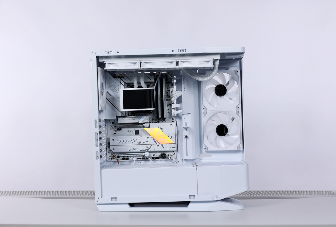 话不多说,一台颜值性能MAX,还带旋转手办台的全白骨伽星舰海景房主机,分享给大家。