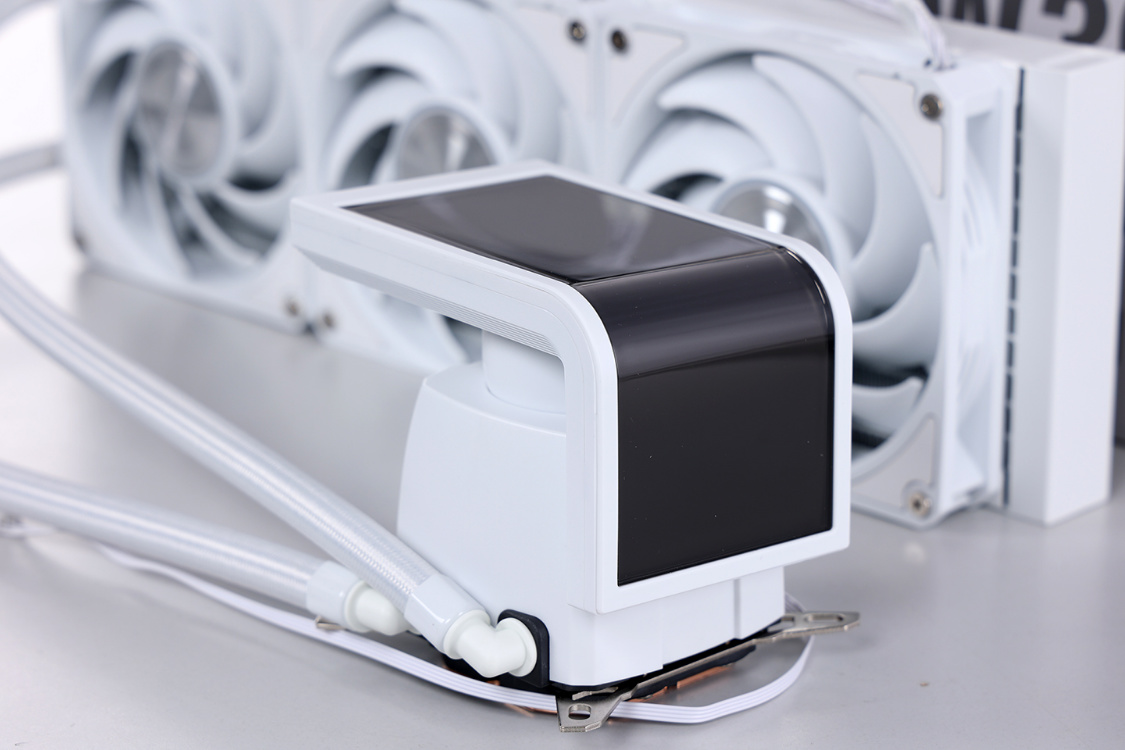 冷头顶部配备一块6.8英寸OLED曲面屏,屏幕分辨率2400*1080,刷新率为60HZ,搭配上水冷配套的屏幕控制软件,可以展现电脑硬件实时状态,也能选择软件内置的炫酷主题,或者自定义视频/图片素材。