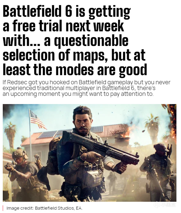 1. EA 宣布,为了朝着1亿玩家的目标不断迈进,《战地6》将于下周二(11月25日)推出首次免费试玩,持续一周。来源:vg247