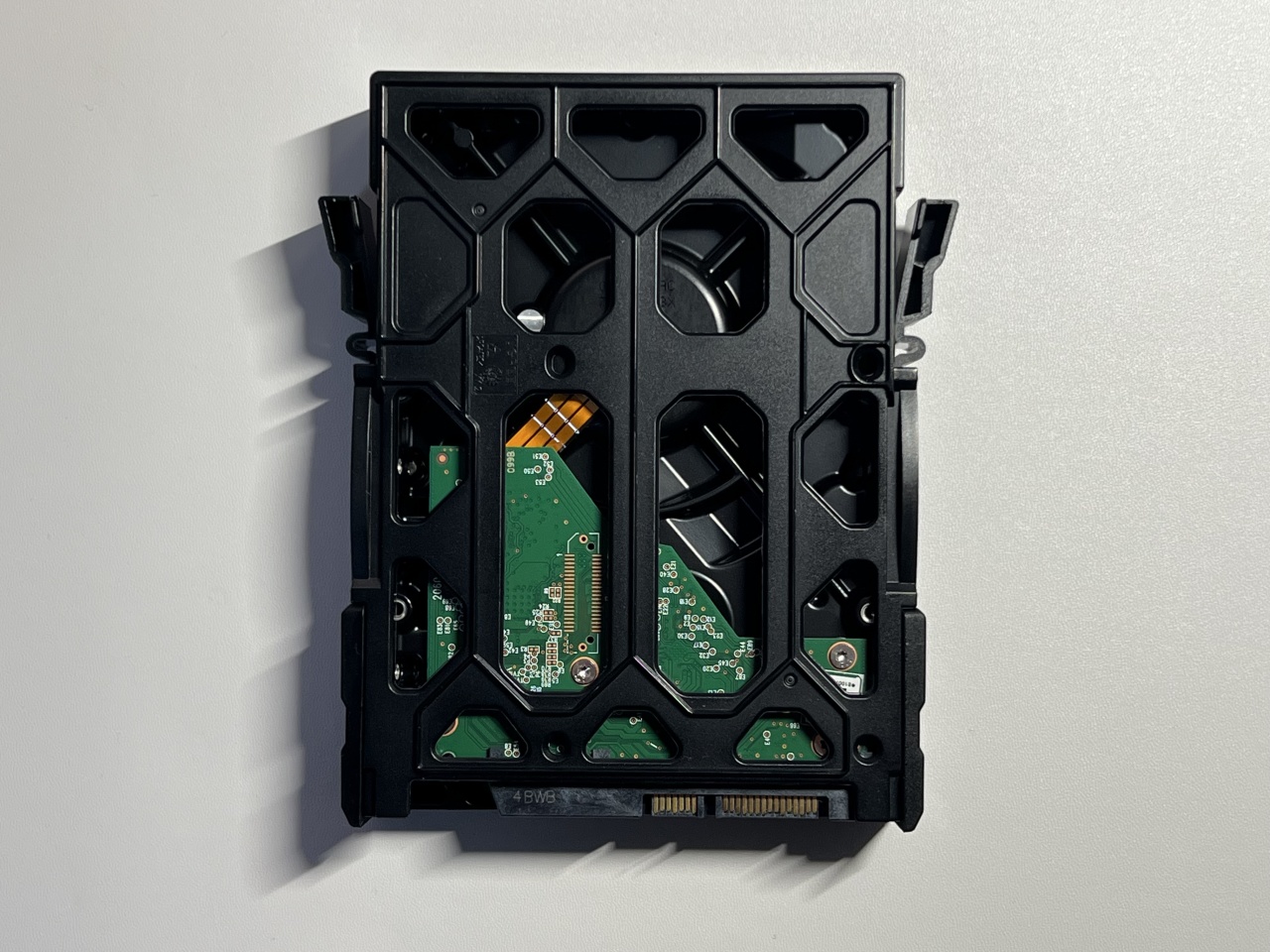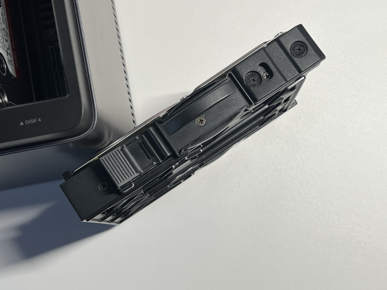 安装很简单,用自带的螺丝刀和螺丝直接将硬盘固定到硬盘架上(第一次装建议看说明书,过程中注意看侧面的螺丝孔位是否对的上)。
