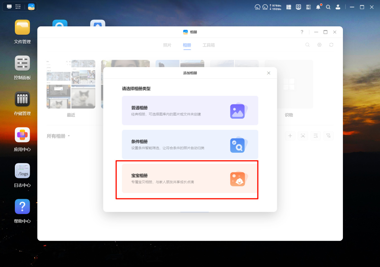 NAS为何被称之为家庭存储?宝宝相册是最直观的体现,相册可以将上传的宝宝图片以时间线记录孩子的成长过程,这也许就是NAS作为家庭存储的意义之一吧。